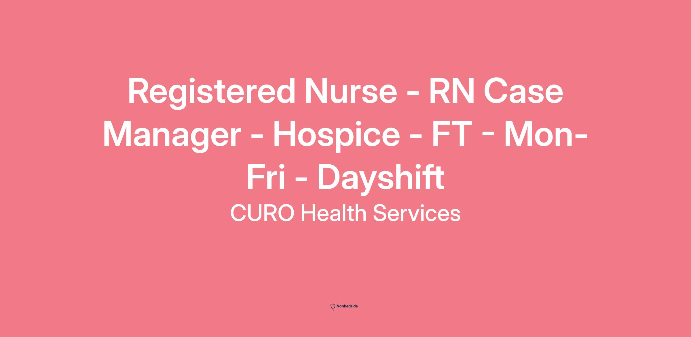 Registered Nurse - RN Case Manager - Hospice - FT - Mon-Fri - Dayshift