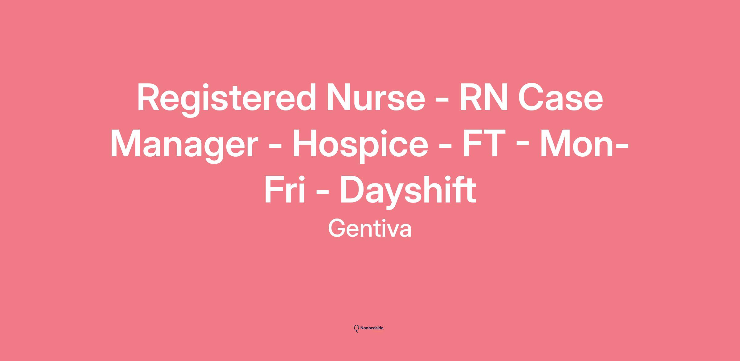 Registered Nurse - RN Case Manager - Hospice - FT - Mon-Fri - Dayshift