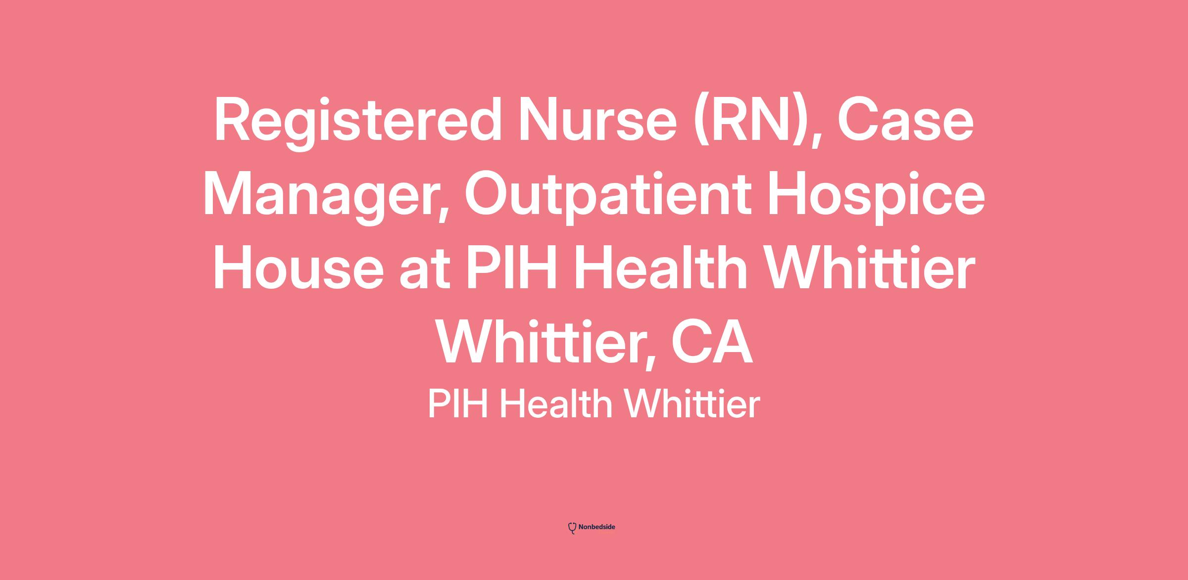 Registered Nurse (RN), Case Manager, Outpatient Hospice House job at PIH Health Whittier. Whittier, CA.