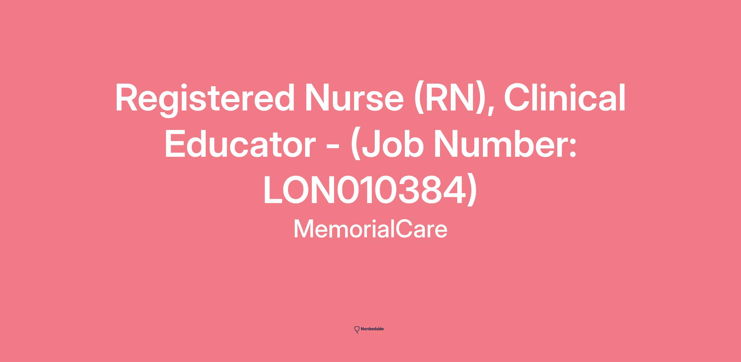 Registered Nurse (RN), Clinical Educator - (Job Number: LON010384) Pay Competitive