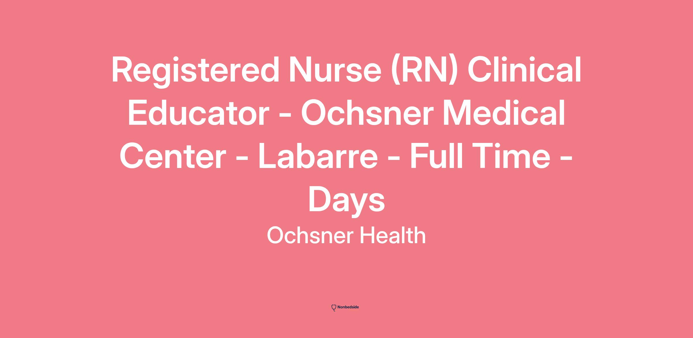 Ochsner is an Equal Opportunity Employer. All qualified applicants will receive consideration for employment without regard to race, color, religion, sex, sexual orientation, gender identity, national origin, protected veteran status, or disability status.