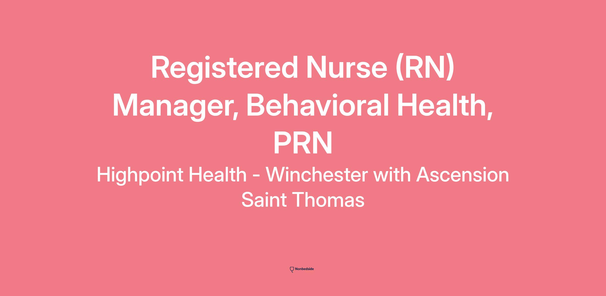 Highpoint Health Winchester with Ascension Saint Thomas is part of Lifepoint Health, a diversified healthcare delivery network with facilities coast to coast. We are driven by a profound commitment to prioritize your well-being so you can provide exceptional care to others. As a Behavioral Health RN Nurse Manager joining our team, you're embracing a vital mission dedicated to making communities healthier ®. Join us on this meaningful journey where your skills, compassion and dedication will make a remarkable difference in the lives of those we serve.