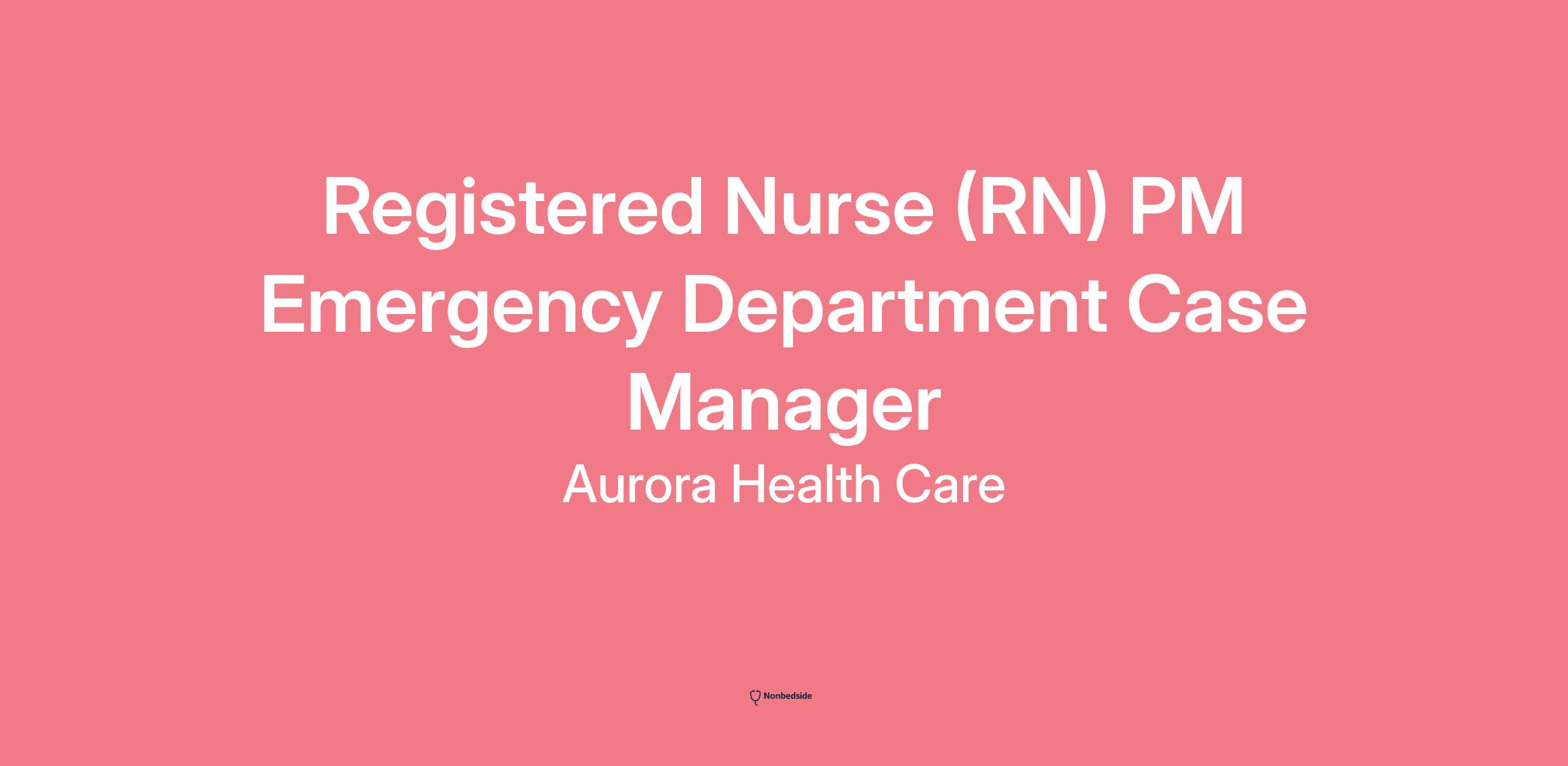 Registered Nurse (RN) PM Emergency Department Case Manager Join to apply for the Registered Nurse (RN) PM Emergency Department Case Manager role at Aurora Health Care