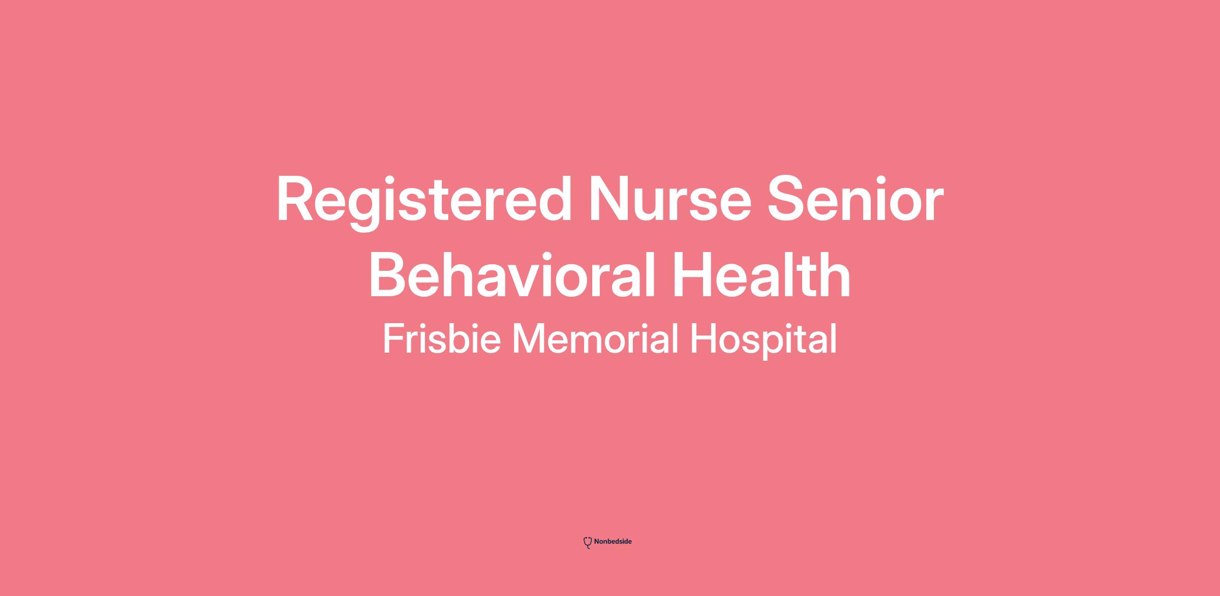 Frisbie Memorial Hospital is committed to investing in the latest technology enabling nurses to work more efficiently. Are you passionate about delivering patient-centered care? Submit your application for Registered Nurse Senior Behavioral Health position and spend more time at the bedside with the patient.
