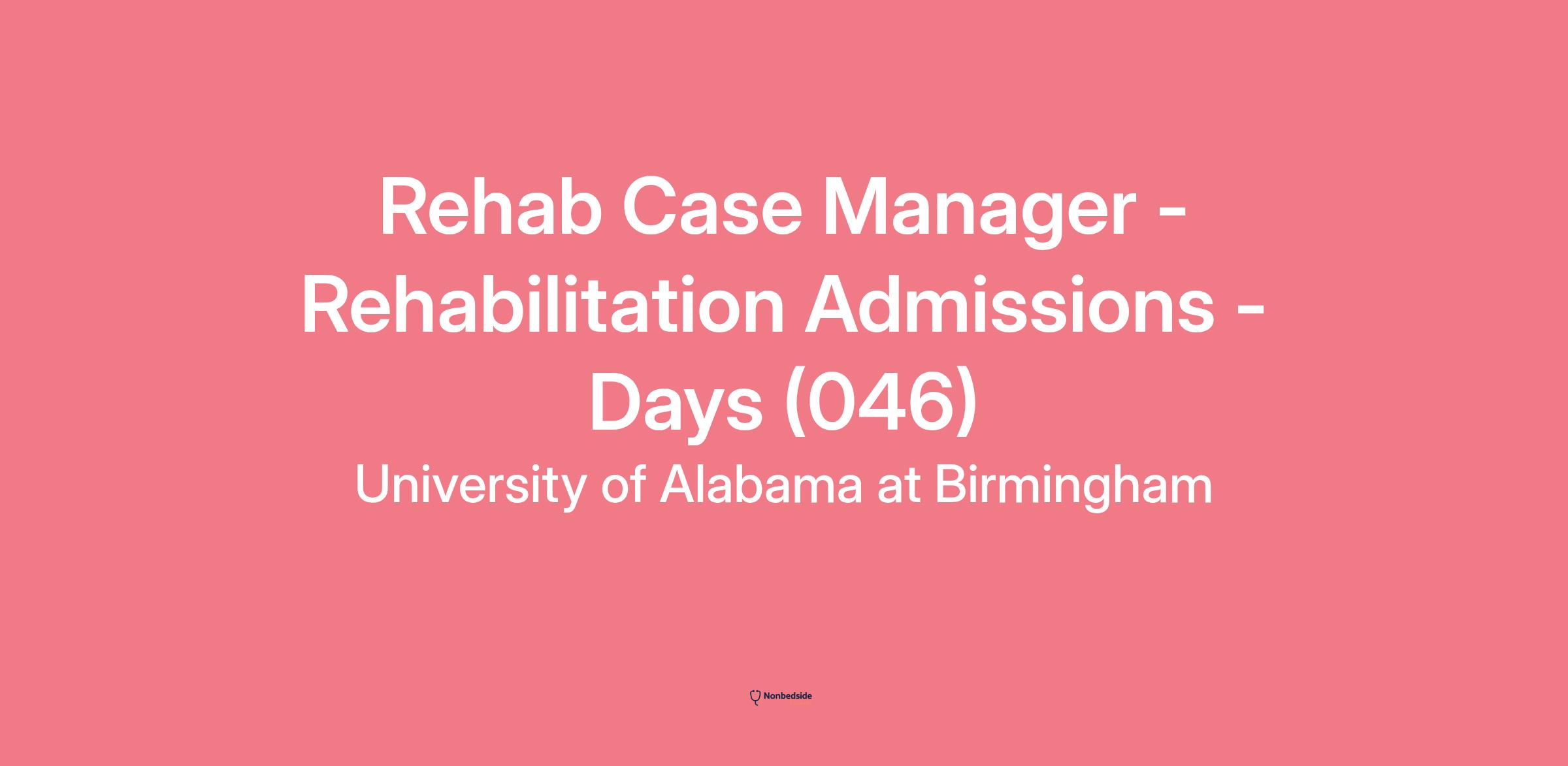Rehab Case Manager - Rehabilitation Admissions - Days (046) - ( T230902 )