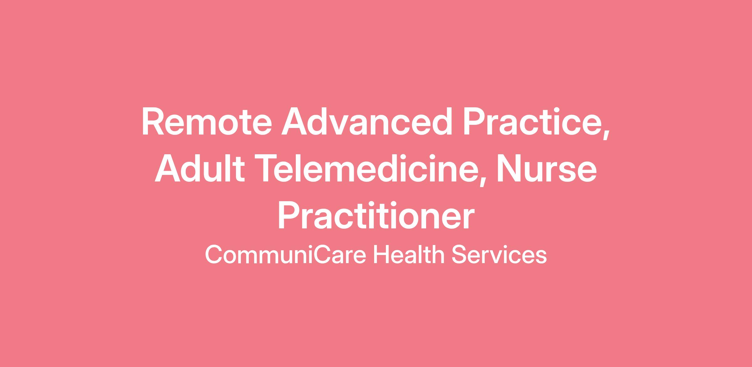 Remote Advanced Practice Providers, Nurse Practitioners – Adult Telemedicine