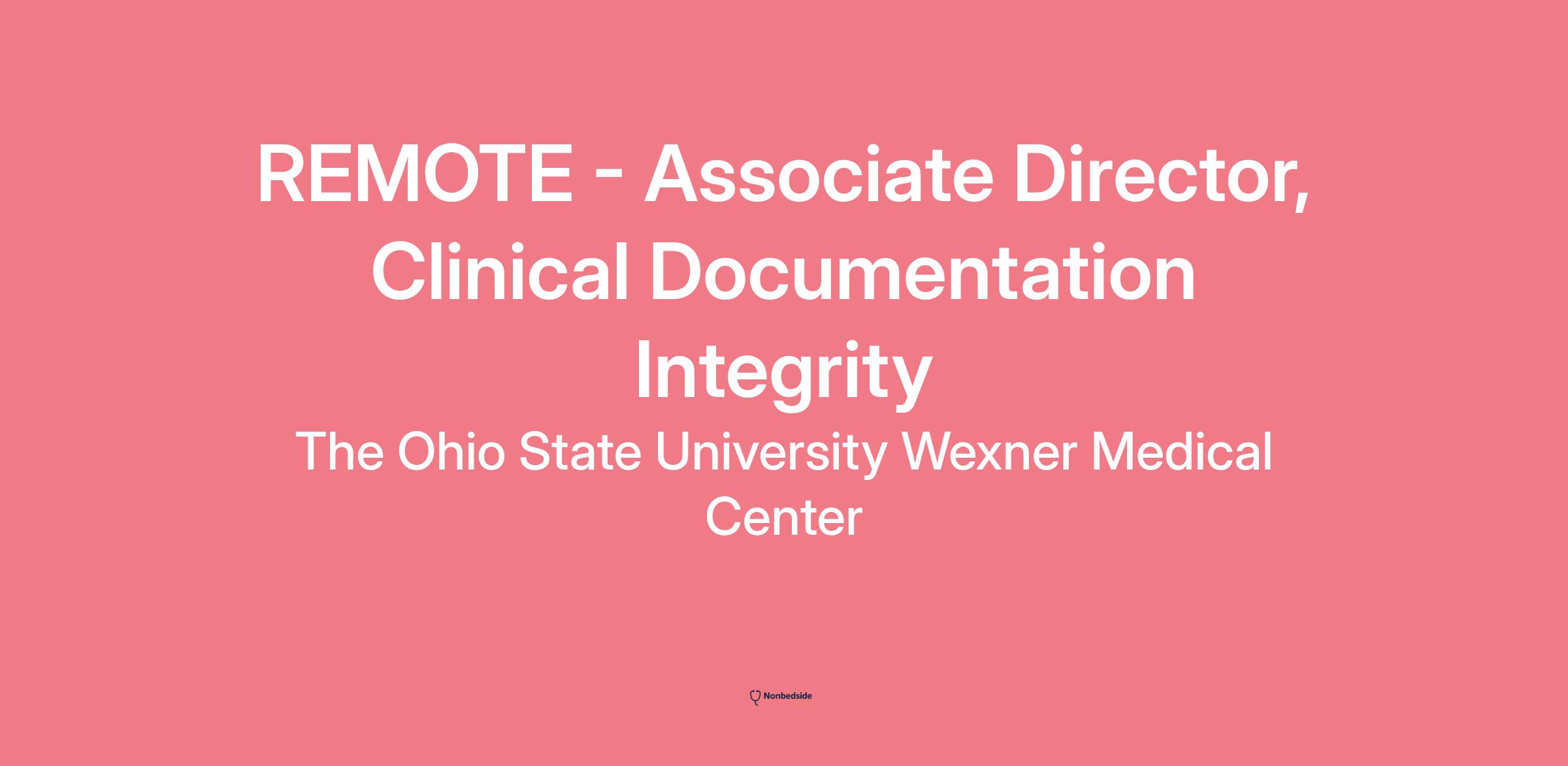 REMOTE – Associate Director, Clinical Documentation Integrity Get AI-powered advice on this job and more exclusive features.