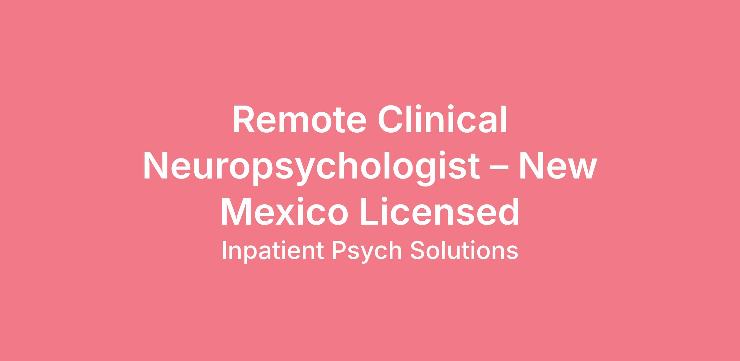 IPS is seeking a New Mexico-licensed Clinical Neuropsychologist to join our growing assessment services team. This is a fully remote position focused on conducting interview and feedback sessions for patients undergoing neuropsychological testing. You’ll work in tandem with a dedicated psychometrist who handles test administration and scoring, allowing you to focus on clinical interpretation, treatment planning, and communication with referral partners.