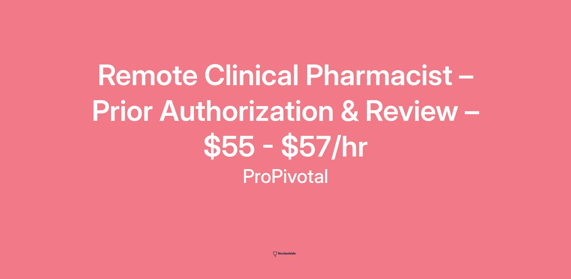Overview Remote Clinical Pharmacist – Prior Authorization & Review – $55 - $57/hr