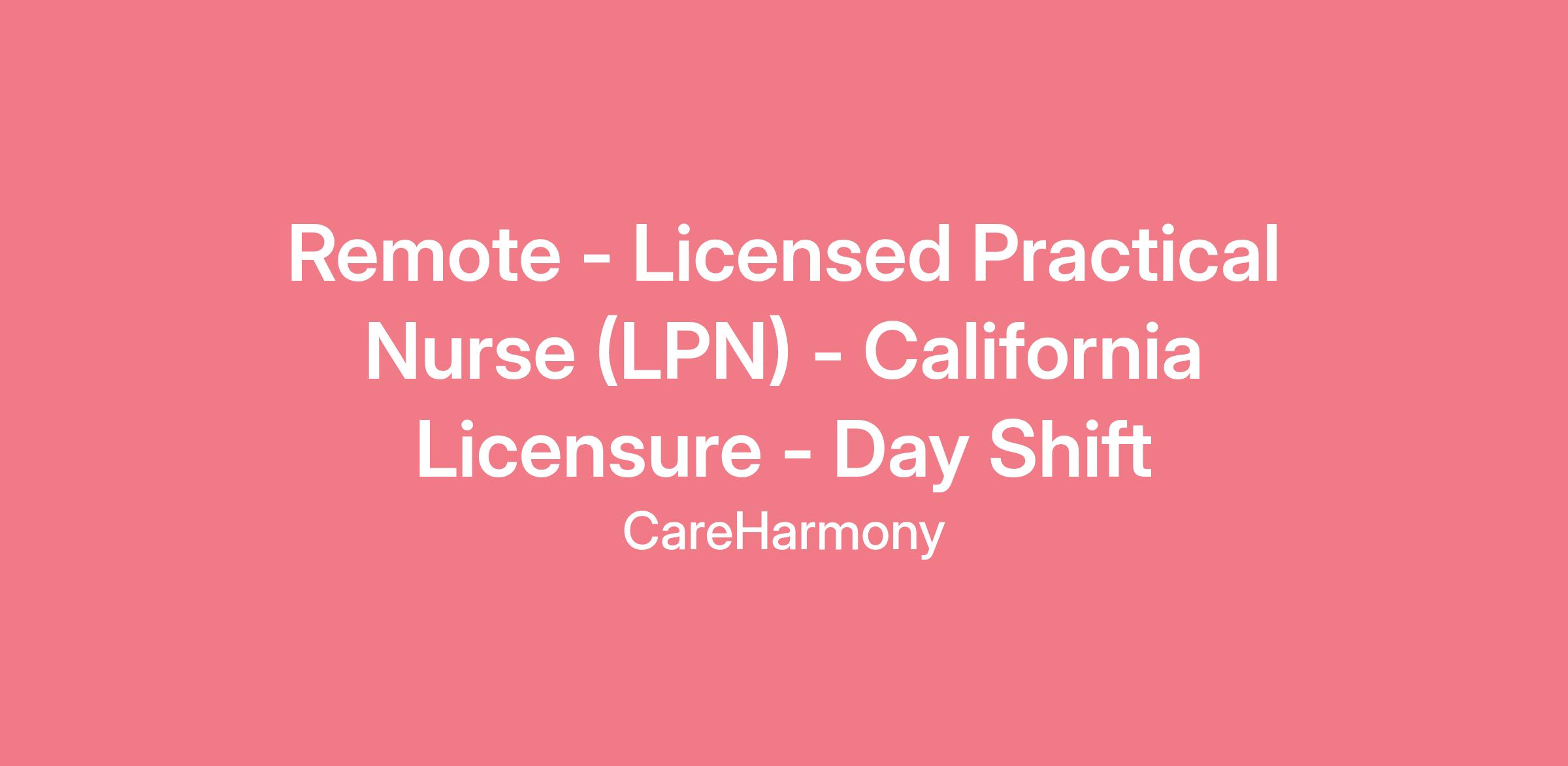 Remote - Licensed Practical Nurse (LPN) - California Licensure - Day Shift