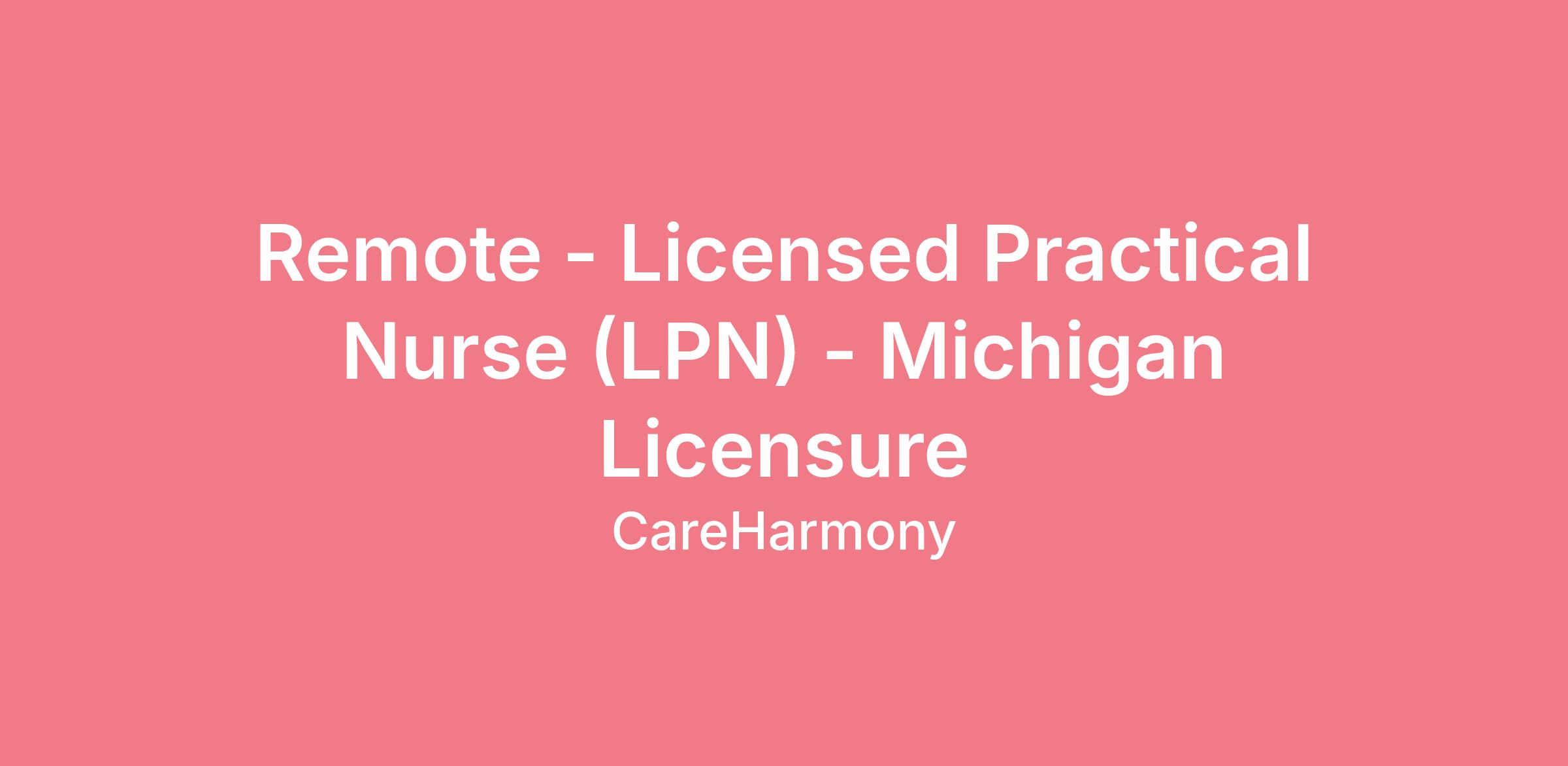 Remote - Licensed Practical Nurse (LPN) - Michigan Licensure