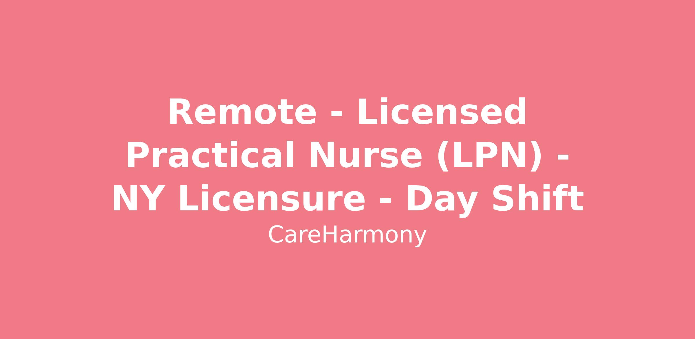 Remote - Licensed Practical Nurse (LPN) - NY Licensure - Day Shift