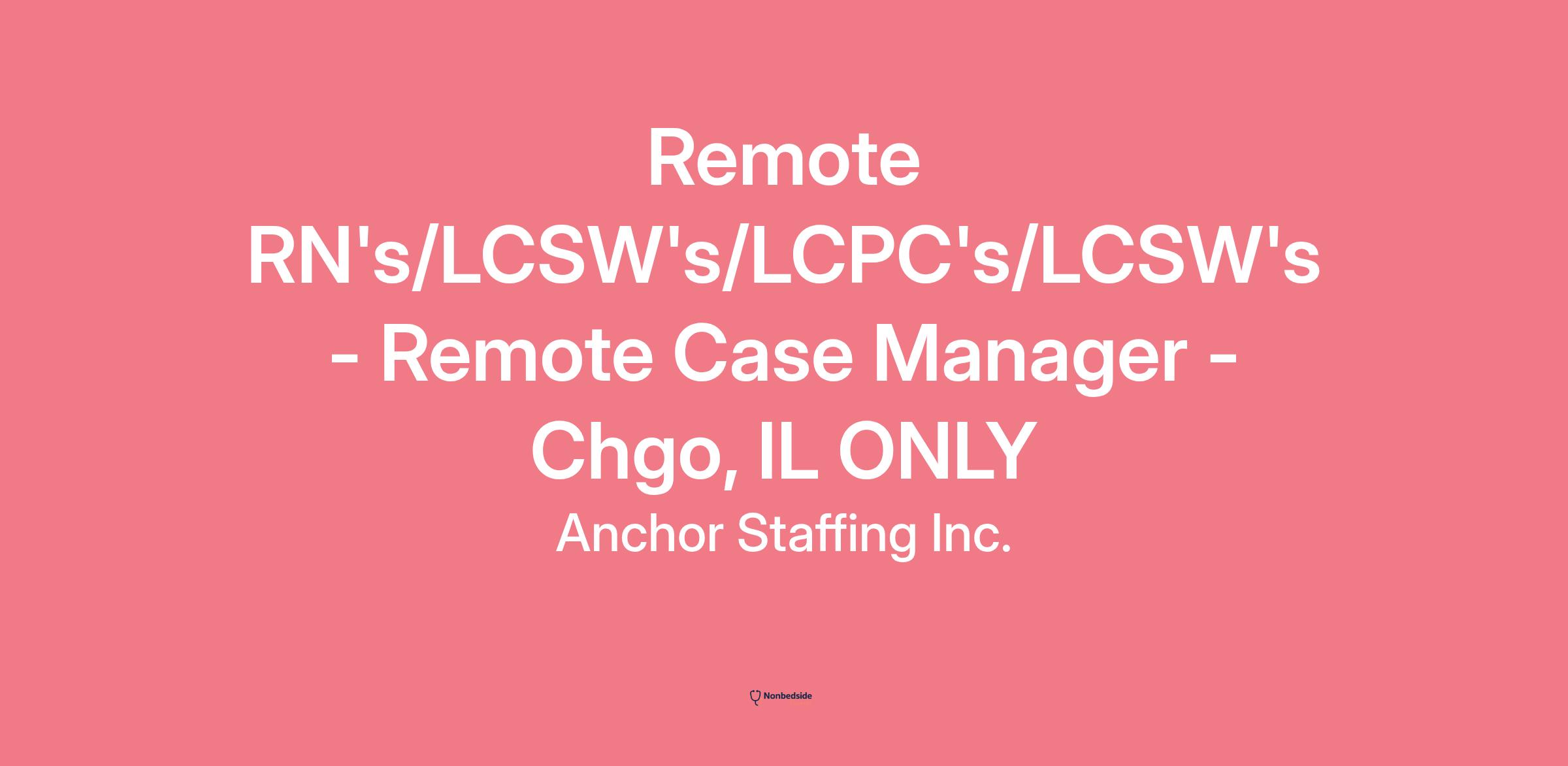 Remote Case Manager - MUST BE a LICENSED RN, LCSW, LCPC, or LCSW AND RESIDE IN IL (No Exceptions)