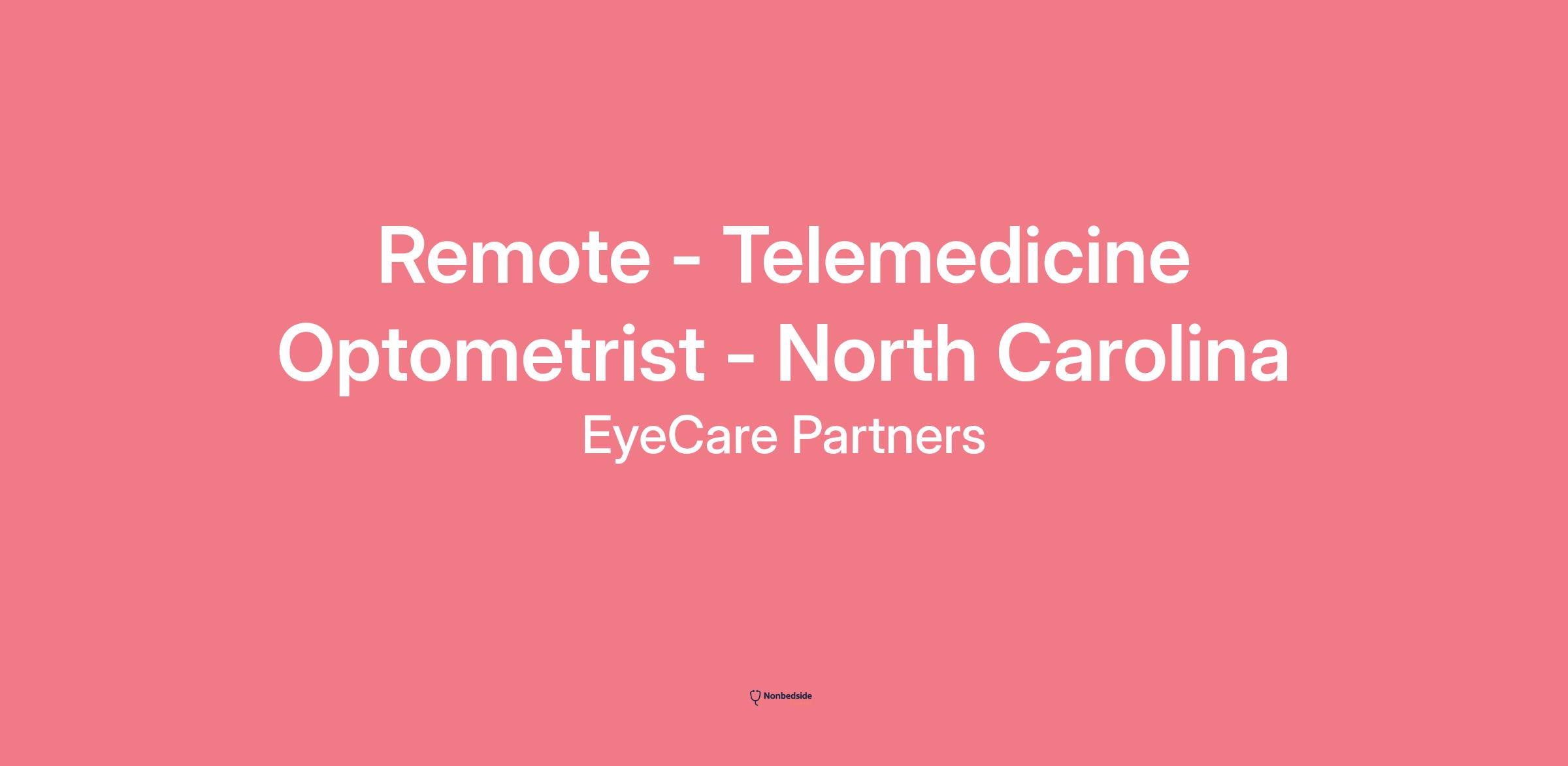 Overview Eyecarecenter is seeking a Part-Time Optometrist licensed in the state of North Carolina to provide comprehensive eye care services remotely. In this innovative role, you will conduct comprehensive eye exams remotely, from your home office, using secure, real-time telehealth technology. With the support of trained in-office ophthalmic technicians, you'll evaluate patients' visual health, diagnose ocular conditions, and prescribe corrective lenses, all from the comfort of your home. You'll communicate directly with patients via video conference and document findings within our proprietary EHR system.