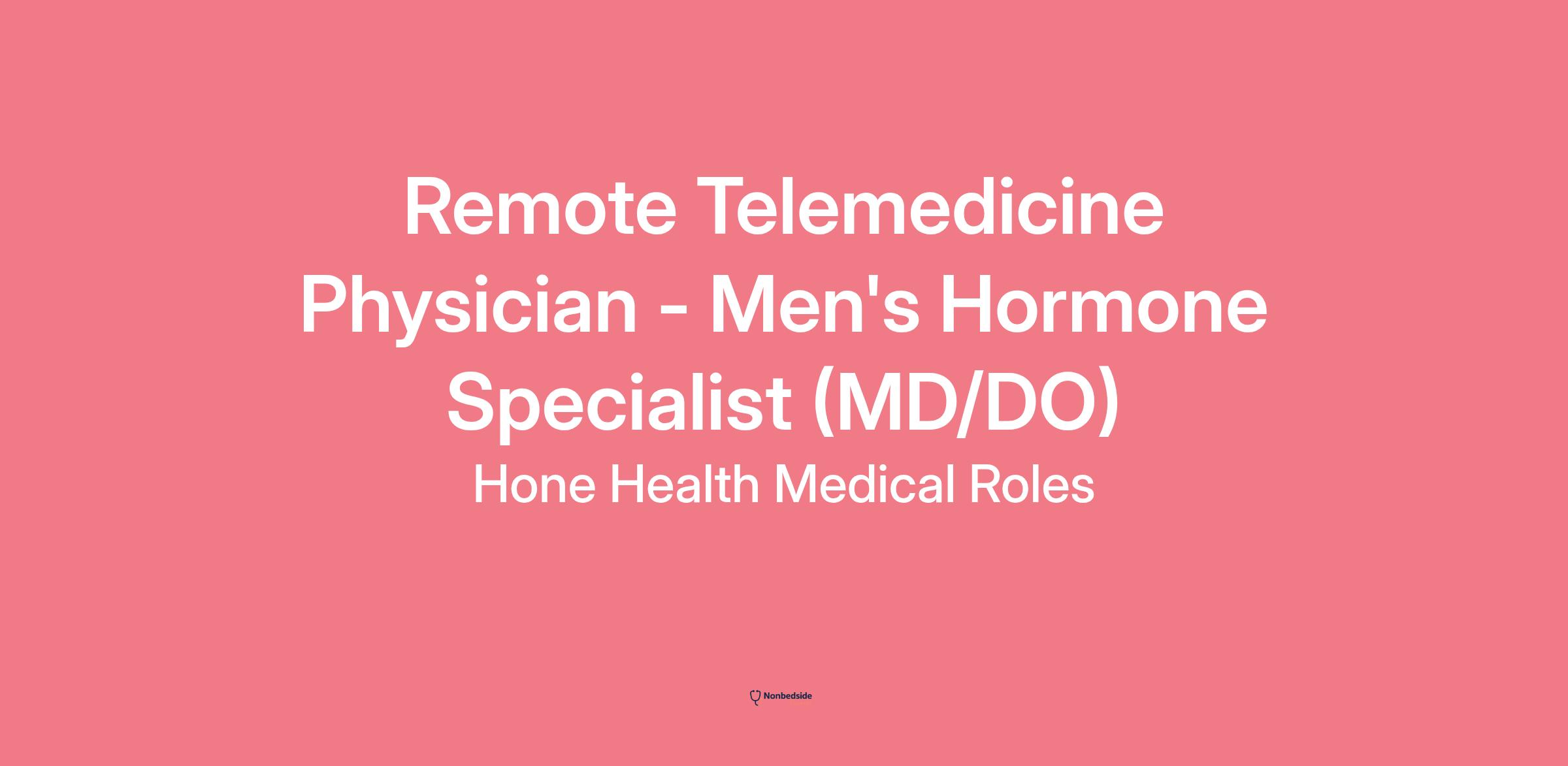 Remote Telemedicine Physician - Men's Hormone Specialist (MD/DO)