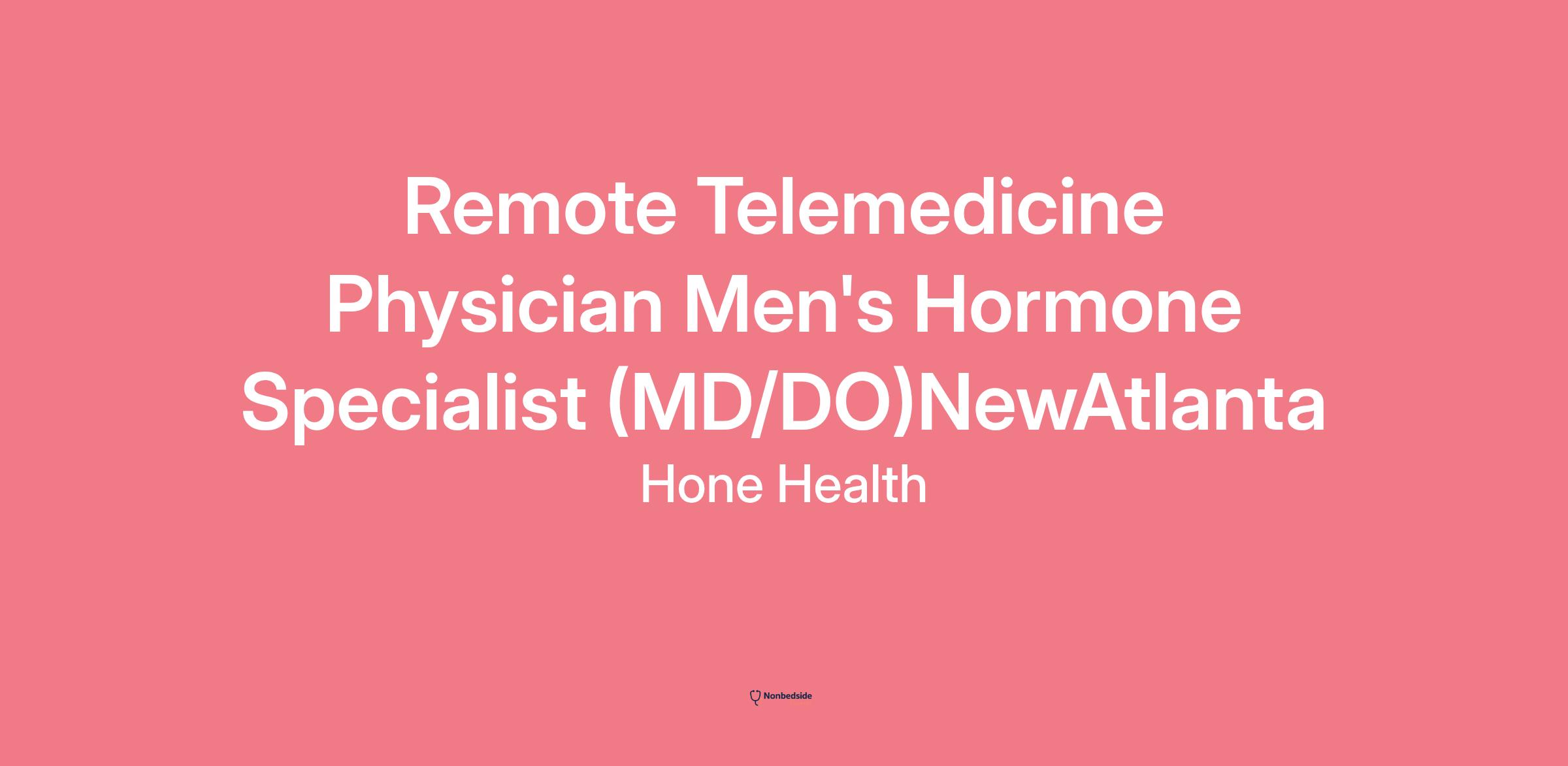 Remote Telemedicine Physician Men's Hormone Specialist (MD/DO)NewAtlanta