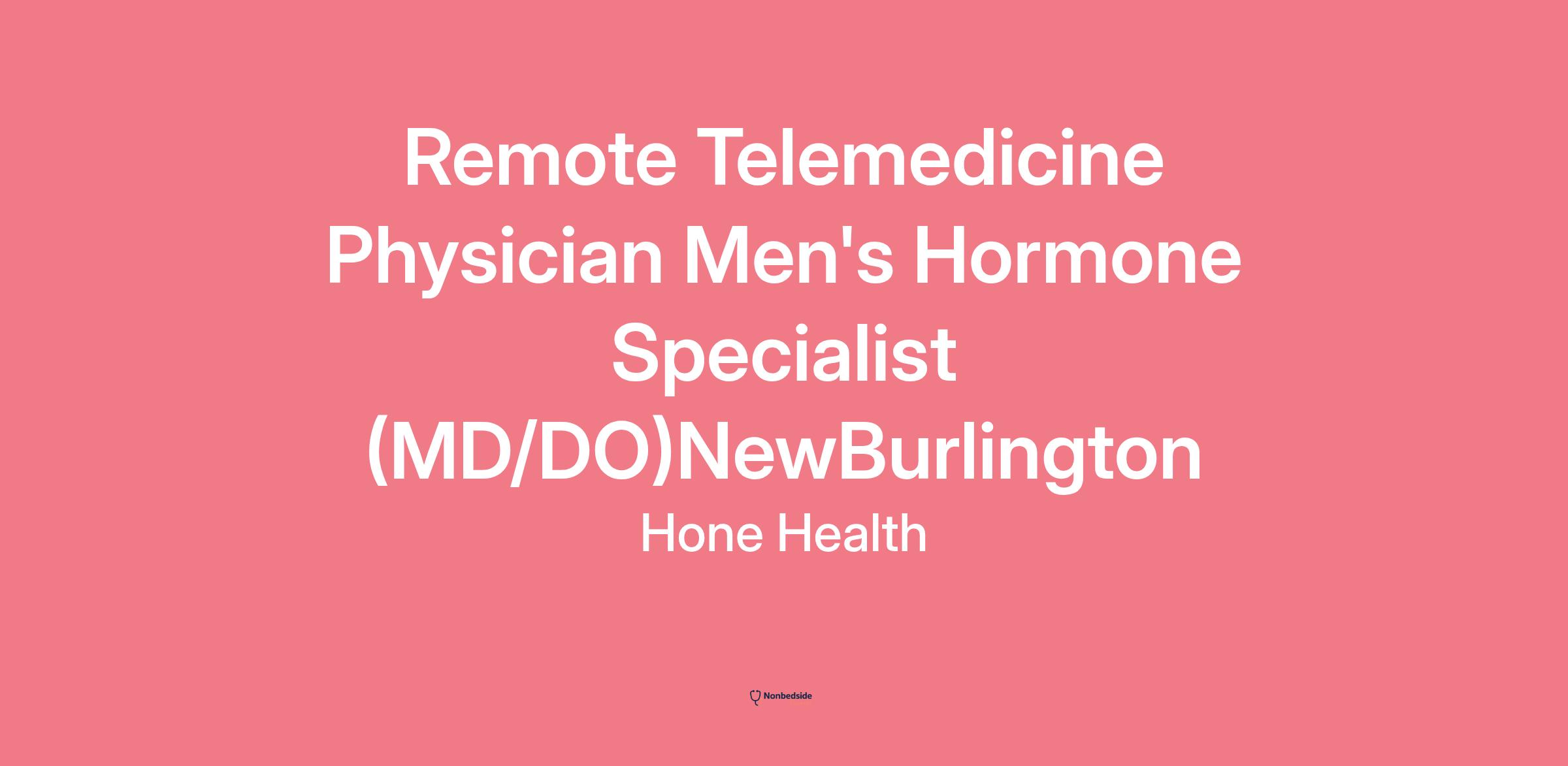 Remote Telemedicine Physician Men's Hormone Specialist (MD/DO)NewBurlington