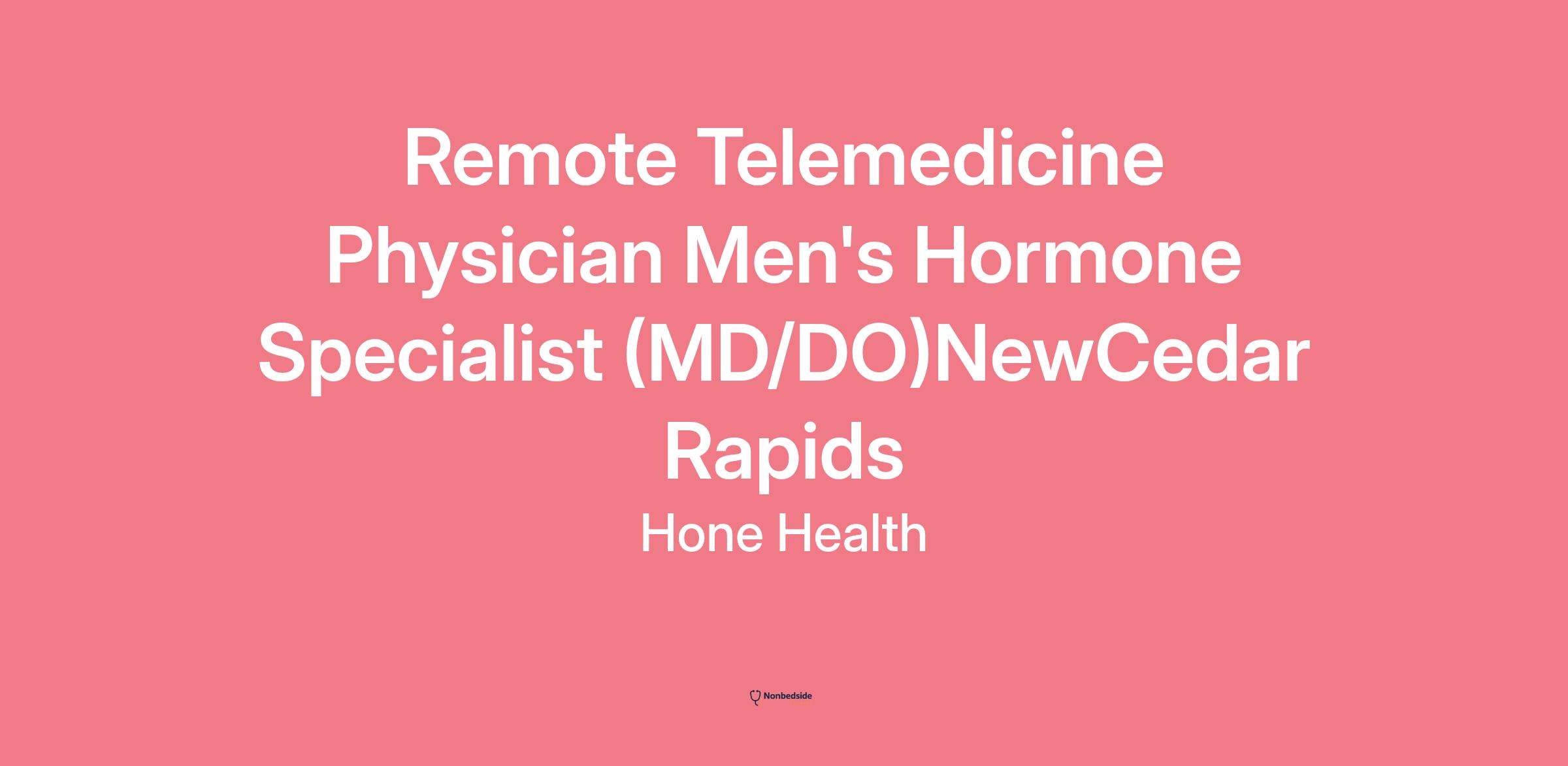 Remote Telemedicine Physician Men's Hormone Specialist (MD/DO)NewCedar Rapids