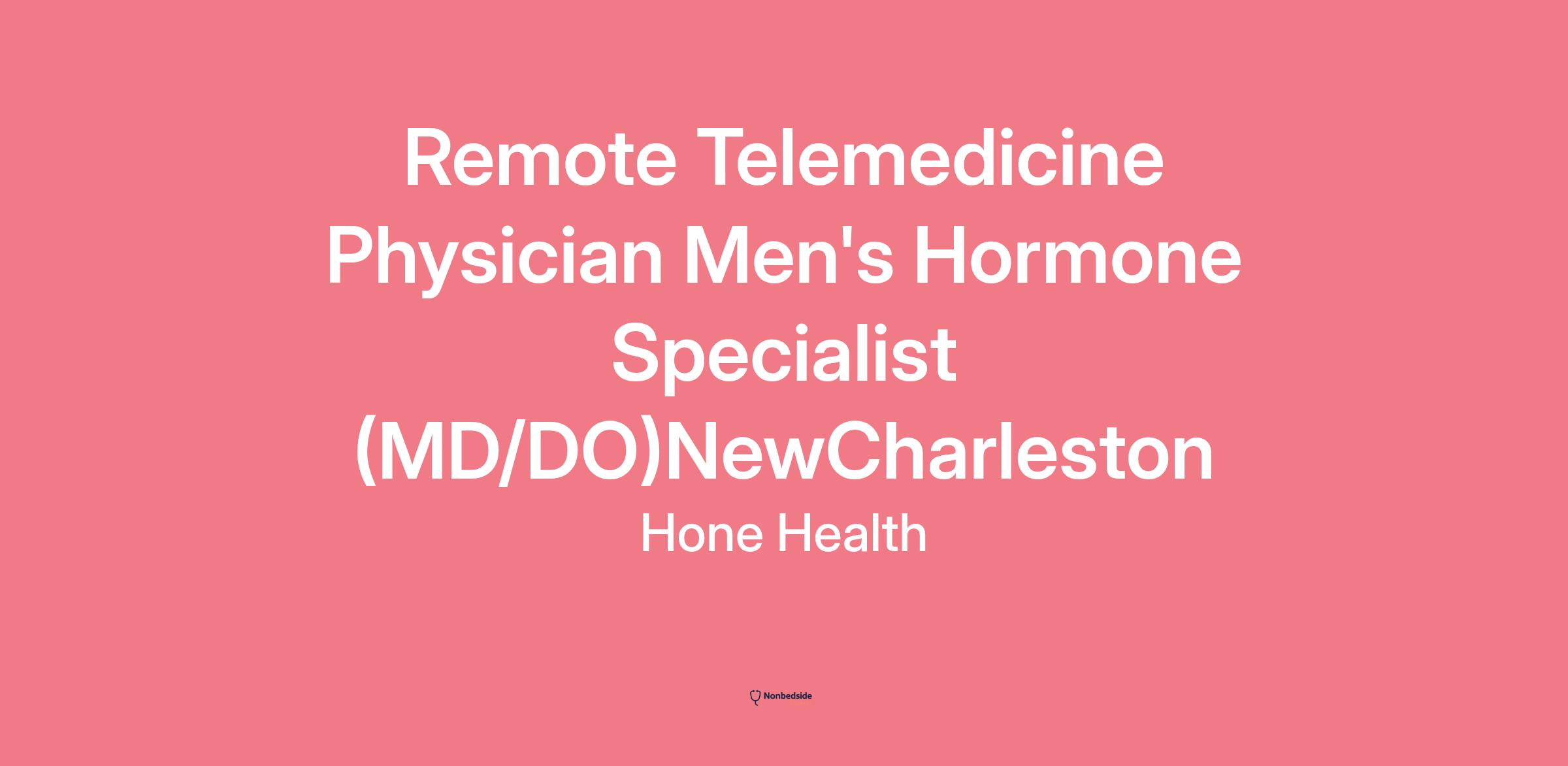 Remote Telemedicine Physician Men's Hormone Specialist (MD/DO)NewCharleston