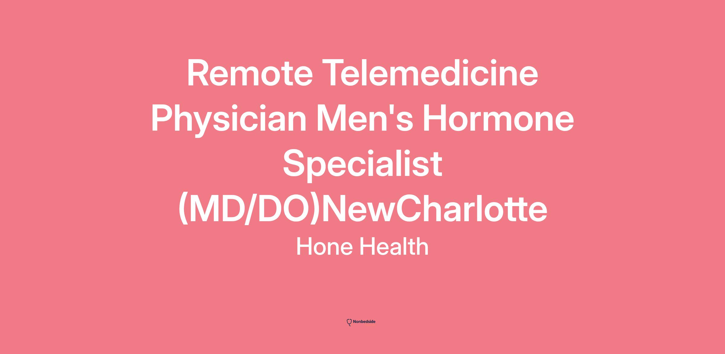Remote Telemedicine Physician Men's Hormone Specialist (MD/DO)NewCharlotte