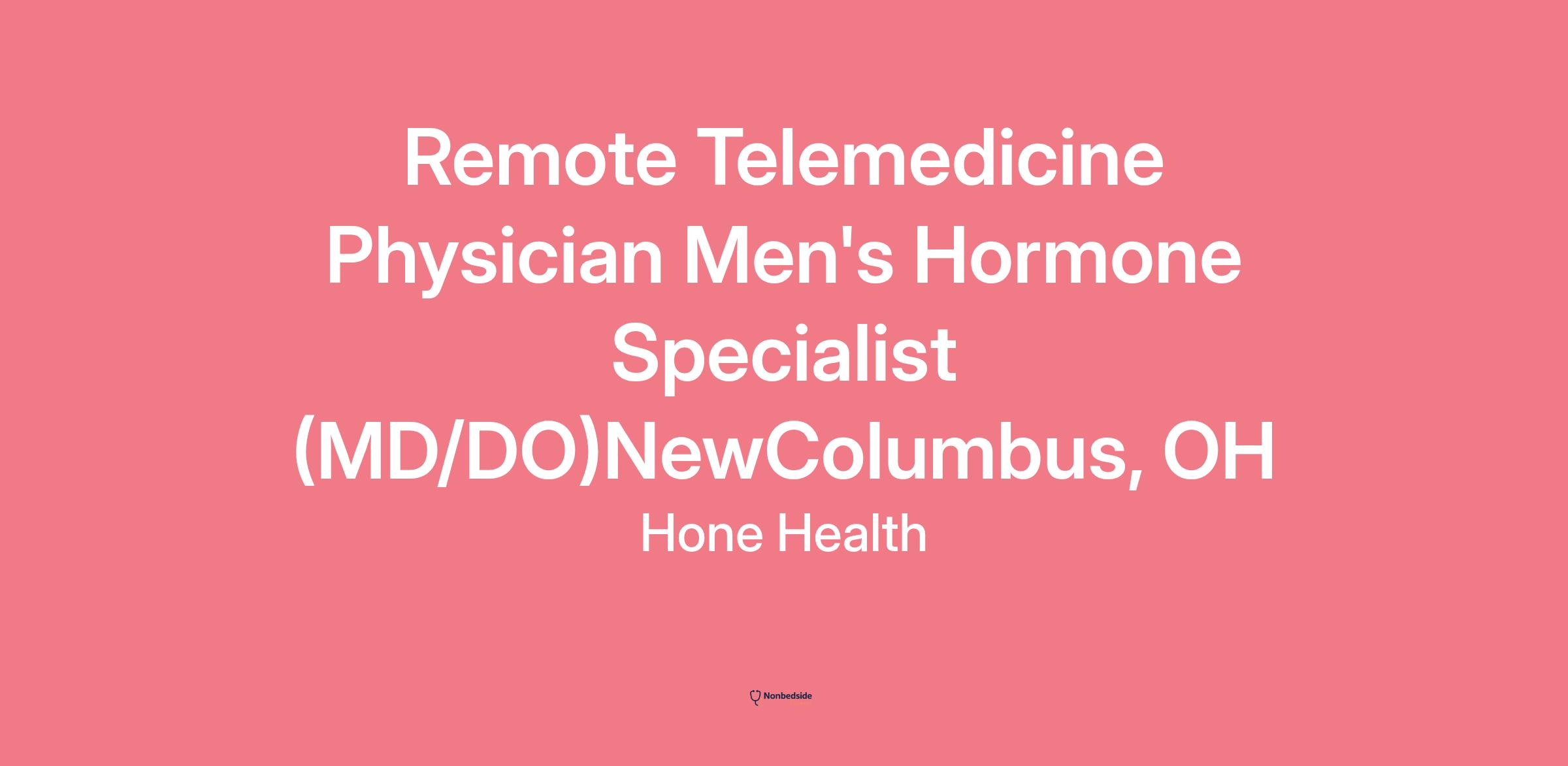 Remote Telemedicine Physician Men's Hormone Specialist (MD/DO)NewColumbus, OH
