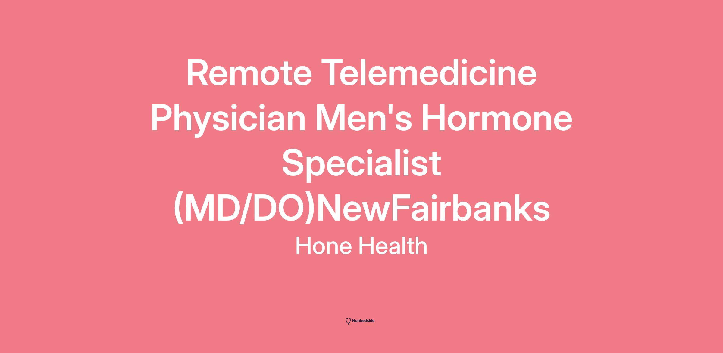 Remote Telemedicine Physician Men's Hormone Specialist (MD/DO)NewFairbanks