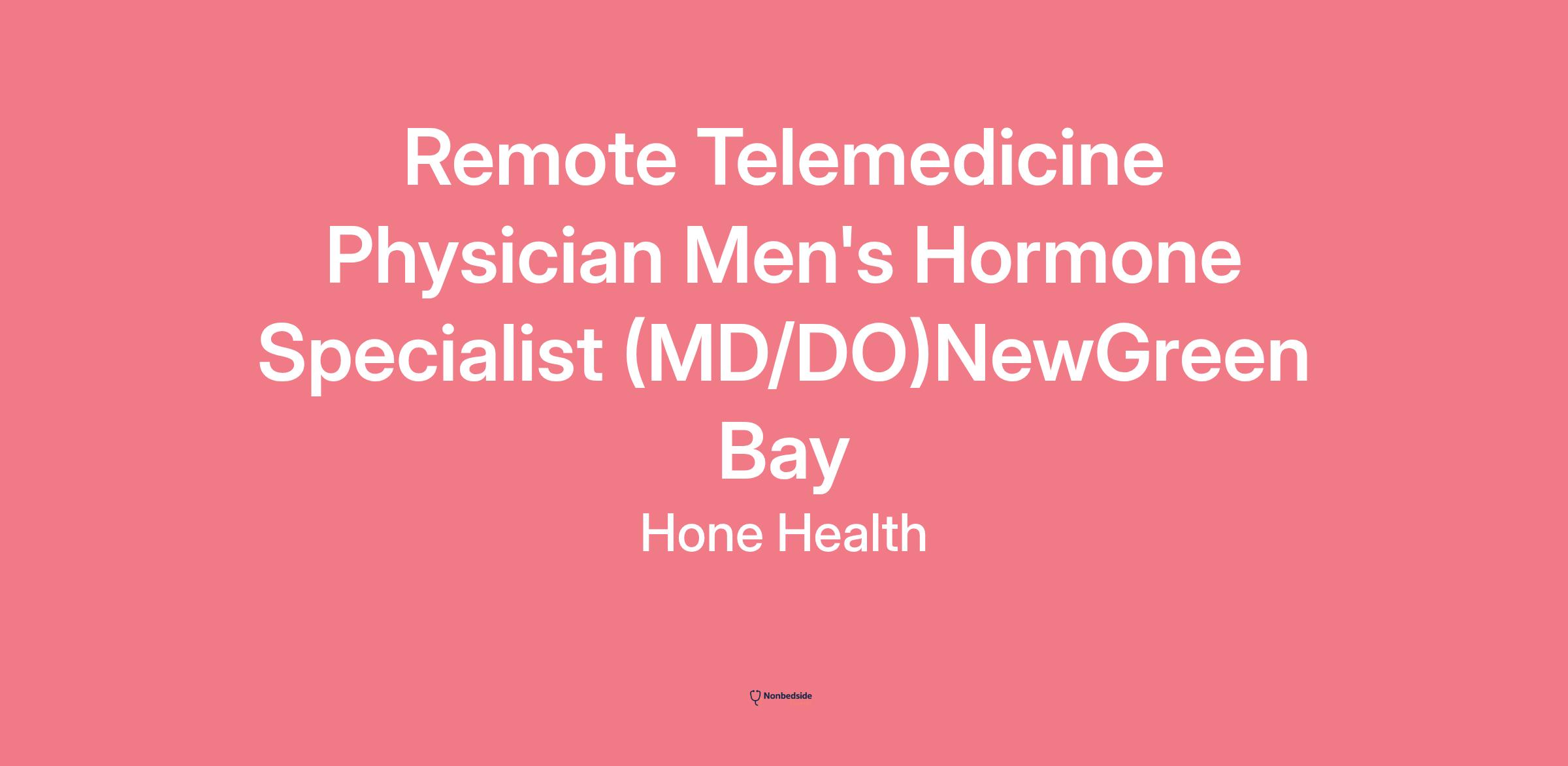 Remote Telemedicine Physician Men's Hormone Specialist (MD/DO)NewGreen Bay