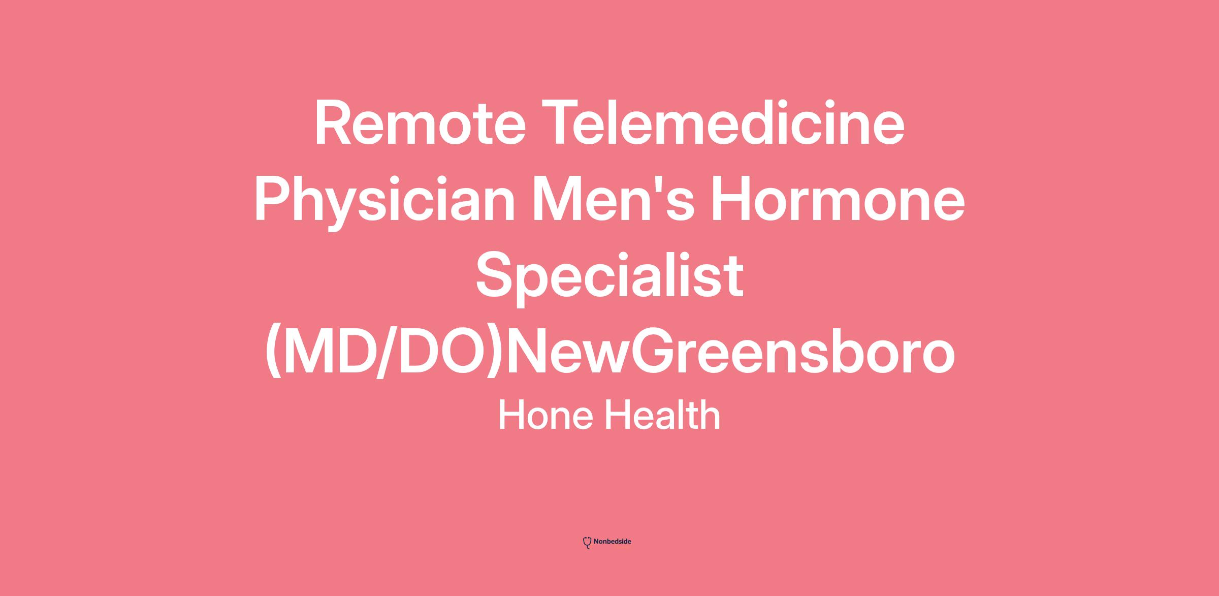 Remote Telemedicine Physician Men's Hormone Specialist (MD/DO)NewGreensboro