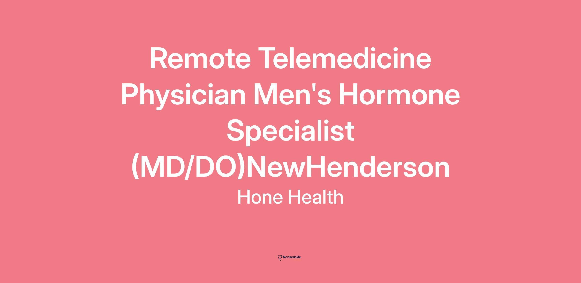 Remote Telemedicine Physician Men's Hormone Specialist (MD/DO)NewHenderson