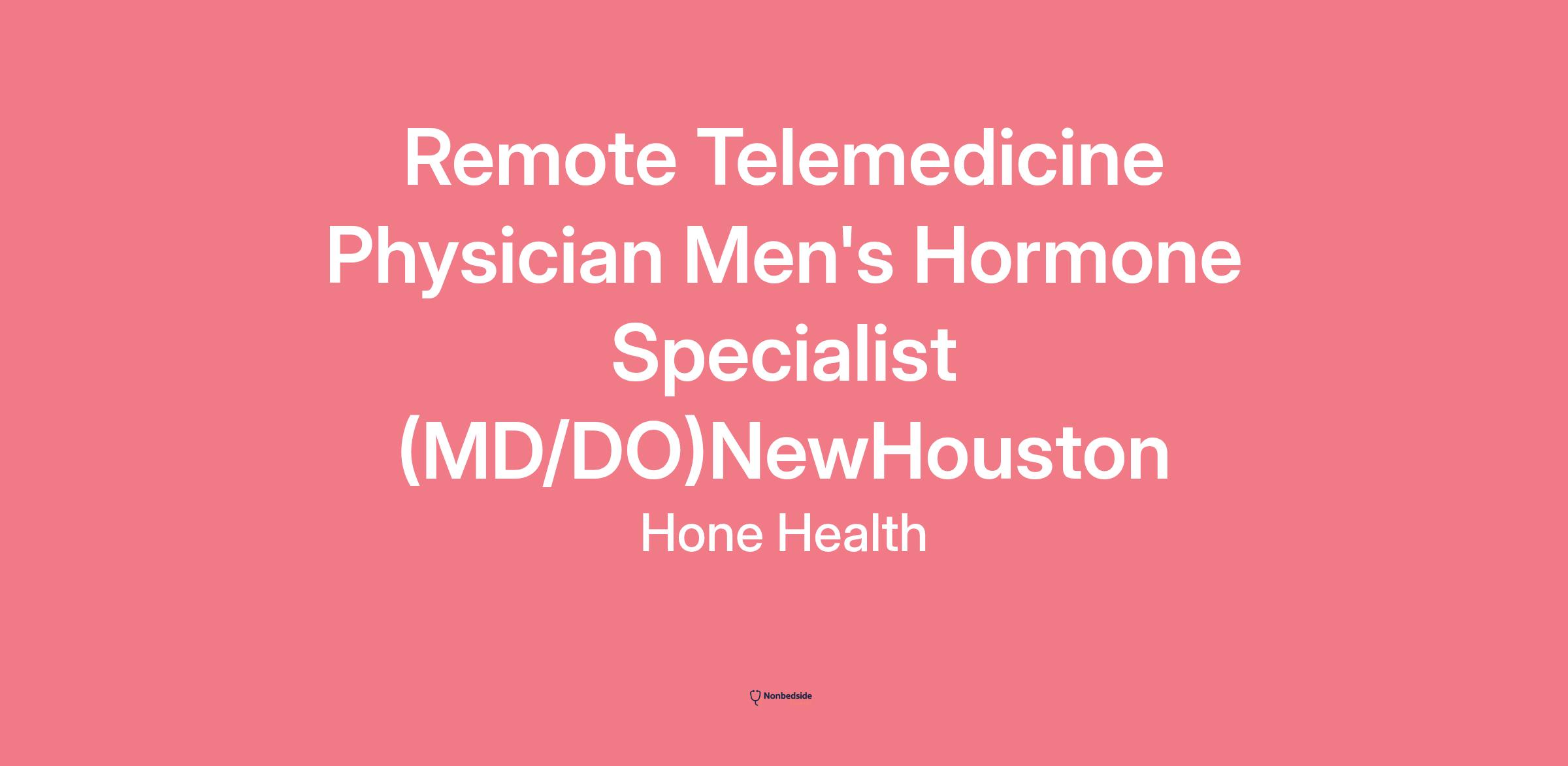 Remote Telemedicine Physician Men's Hormone Specialist (MD/DO)NewHouston