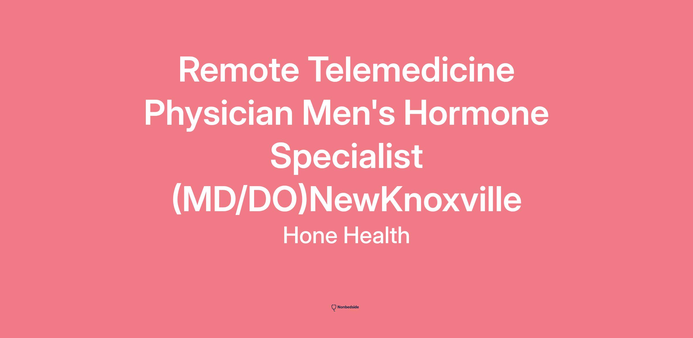 Remote Telemedicine Physician Men's Hormone Specialist (MD/DO)NewKnoxville