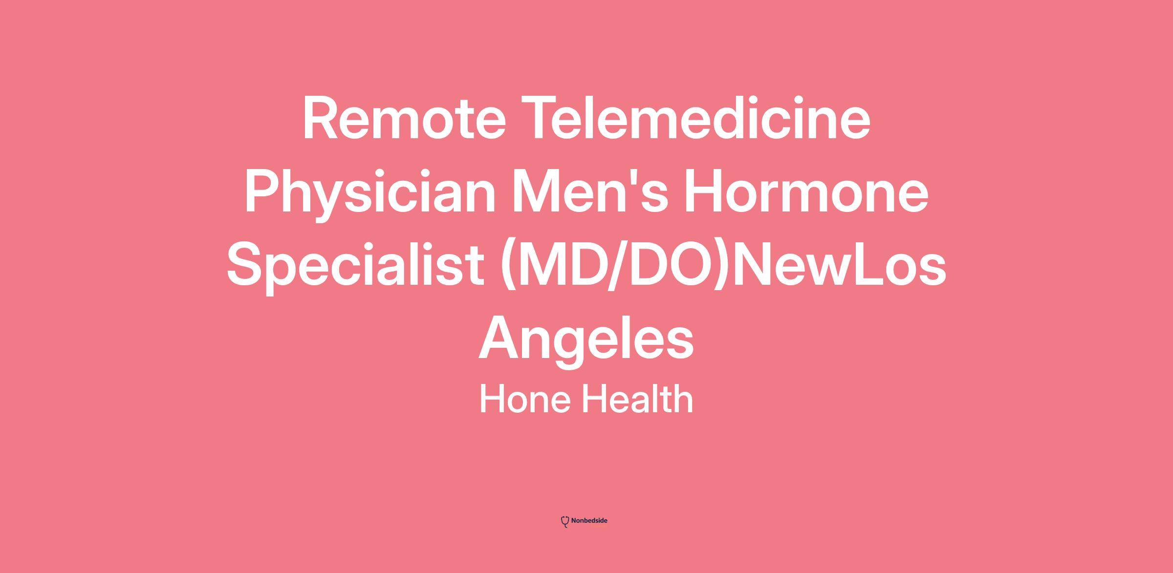Remote Telemedicine Physician Men's Hormone Specialist (MD/DO)NewLos Angeles