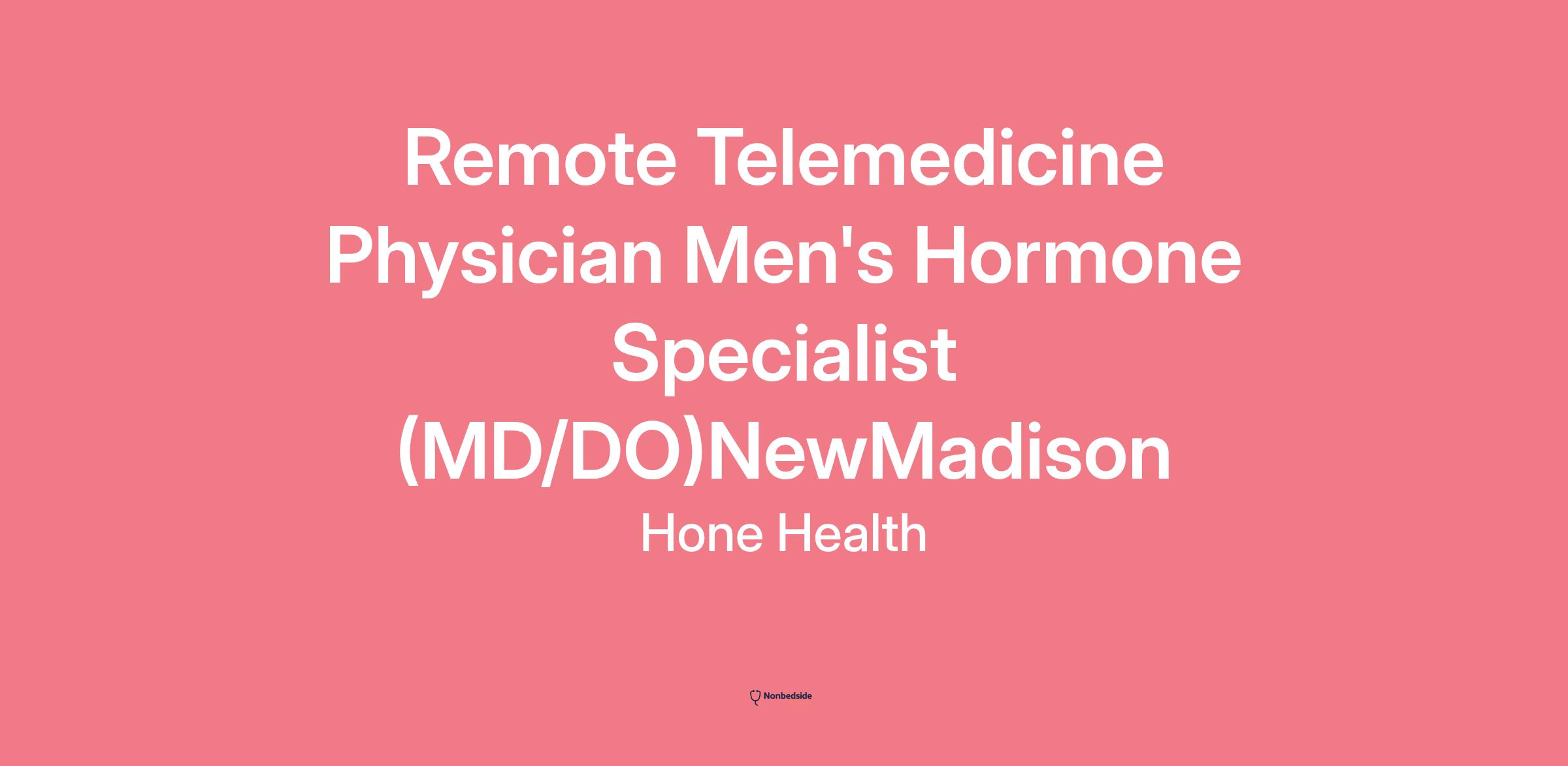 Remote Telemedicine Physician Men's Hormone Specialist (MD/DO)NewMadison