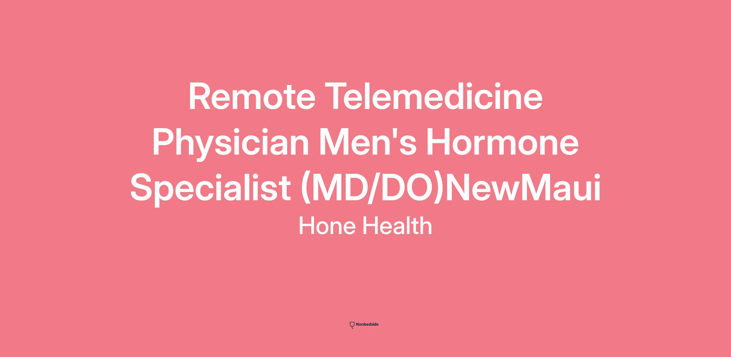 Remote Telemedicine Physician Men's Hormone Specialist (MD/DO)NewMaui