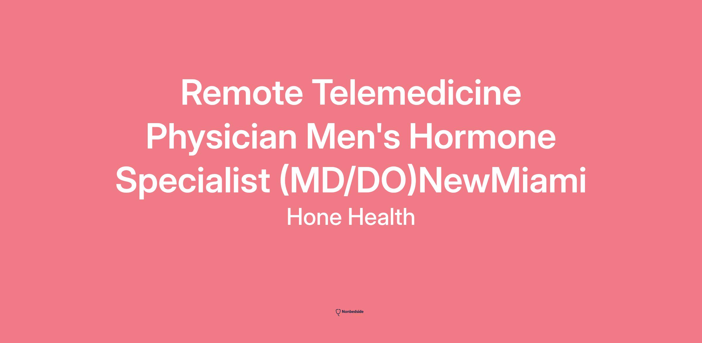 Remote Telemedicine Physician Men's Hormone Specialist (MD/DO)NewMiami