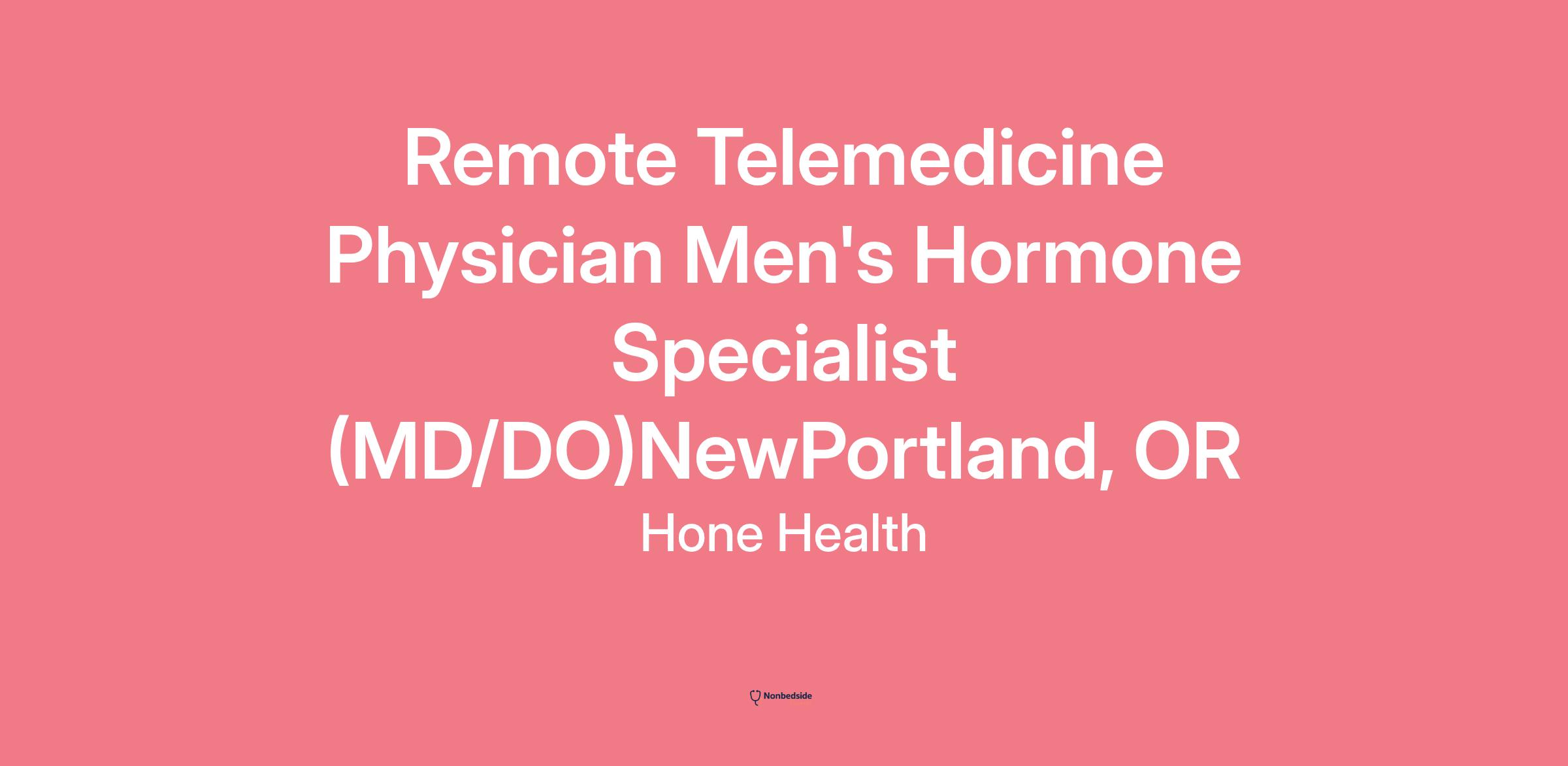 Remote Telemedicine Physician Men's Hormone Specialist (MD/DO)NewPortland, OR