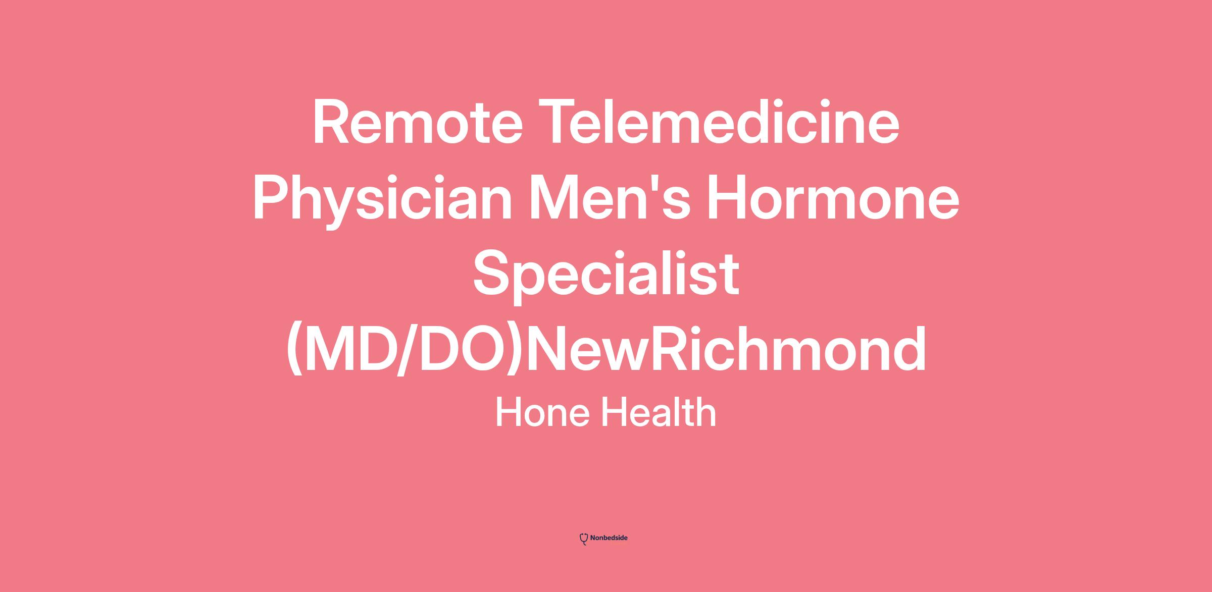 Remote Telemedicine Physician Men's Hormone Specialist (MD/DO)NewRichmond