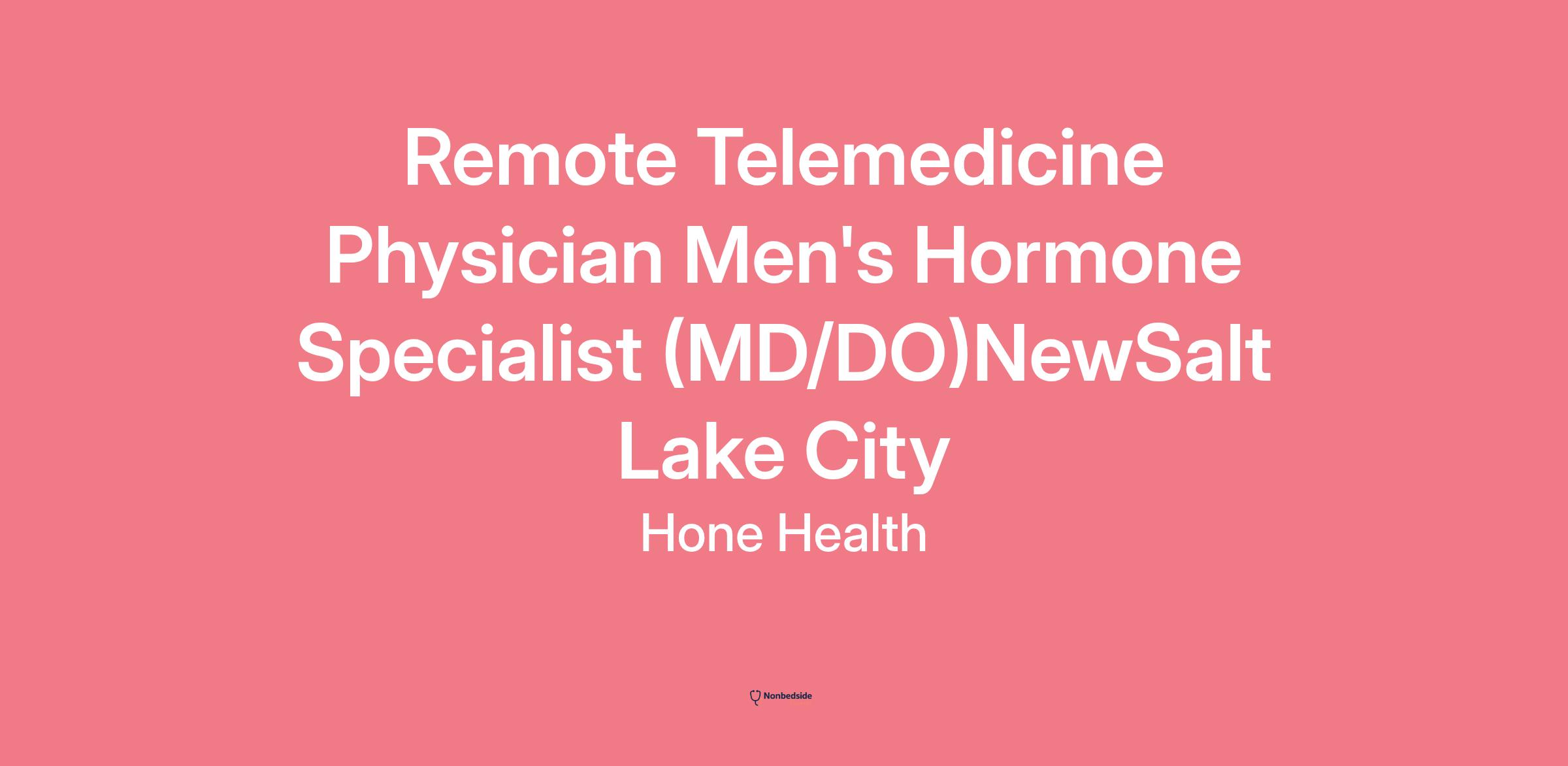 Remote Telemedicine Physician Men's Hormone Specialist (MD/DO)NewSalt Lake City