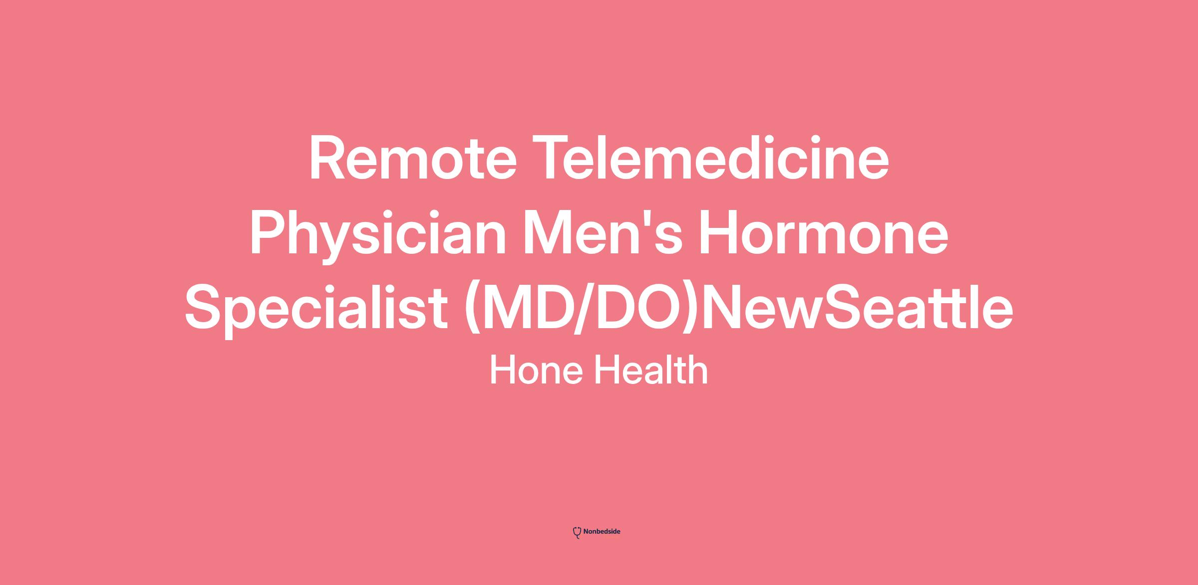 Remote Telemedicine Physician Men's Hormone Specialist (MD/DO)NewSeattle
