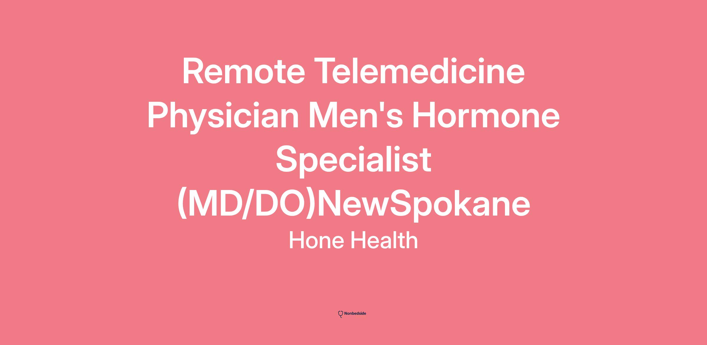 Remote Telemedicine Physician Men's Hormone Specialist (MD/DO)NewSpokane