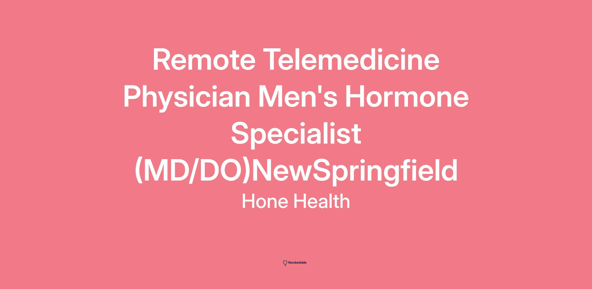 Remote Telemedicine Physician Men's Hormone Specialist (MD/DO)NewSpringfield