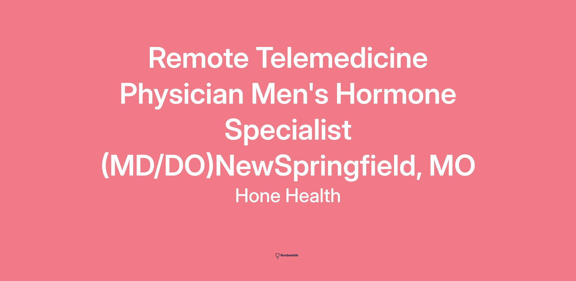 Remote Telemedicine Physician Men's Hormone Specialist (MD/DO)NewSpringfield, MO