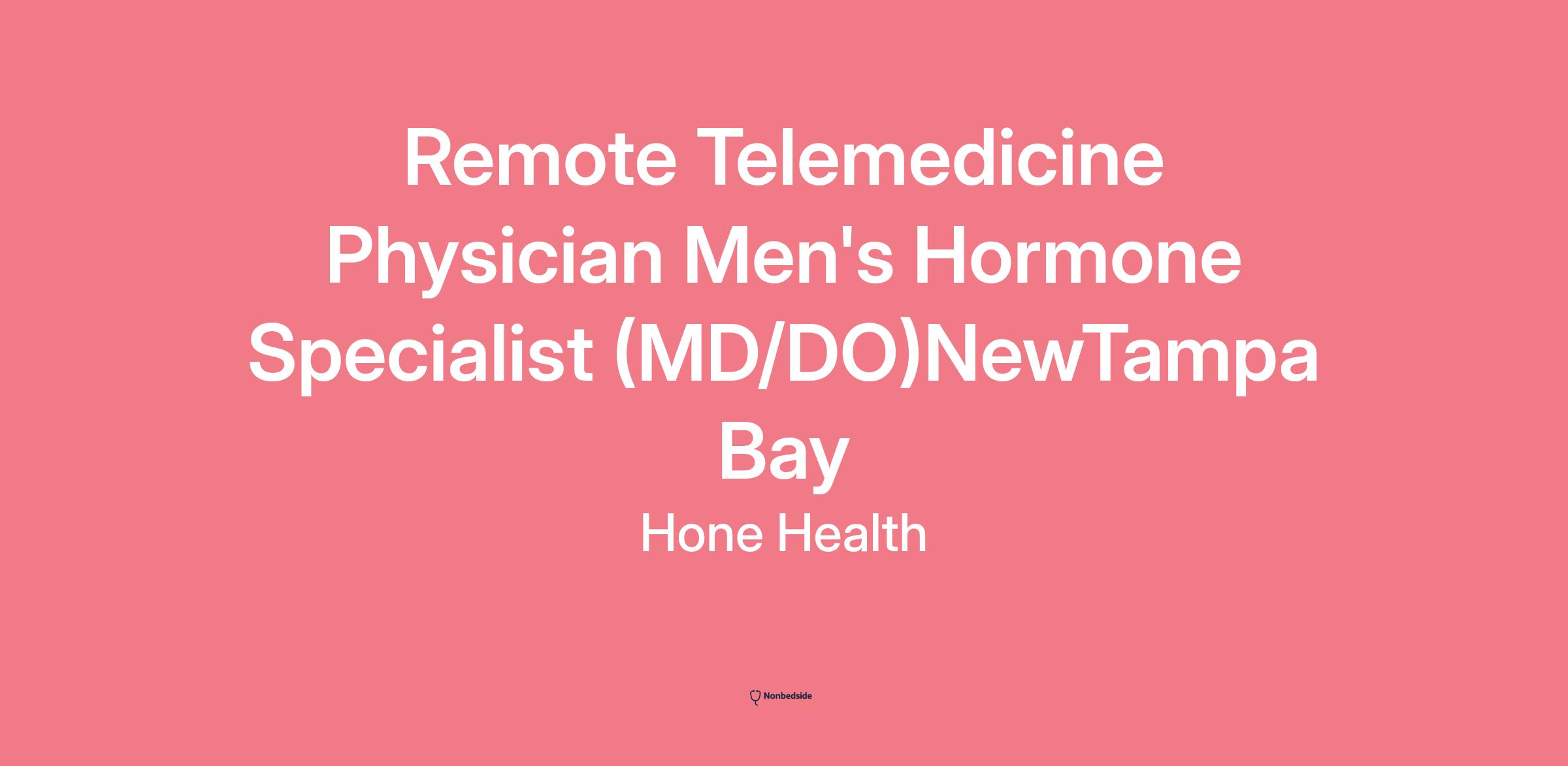 Remote Telemedicine Physician Men's Hormone Specialist (MD/DO)NewTampa Bay