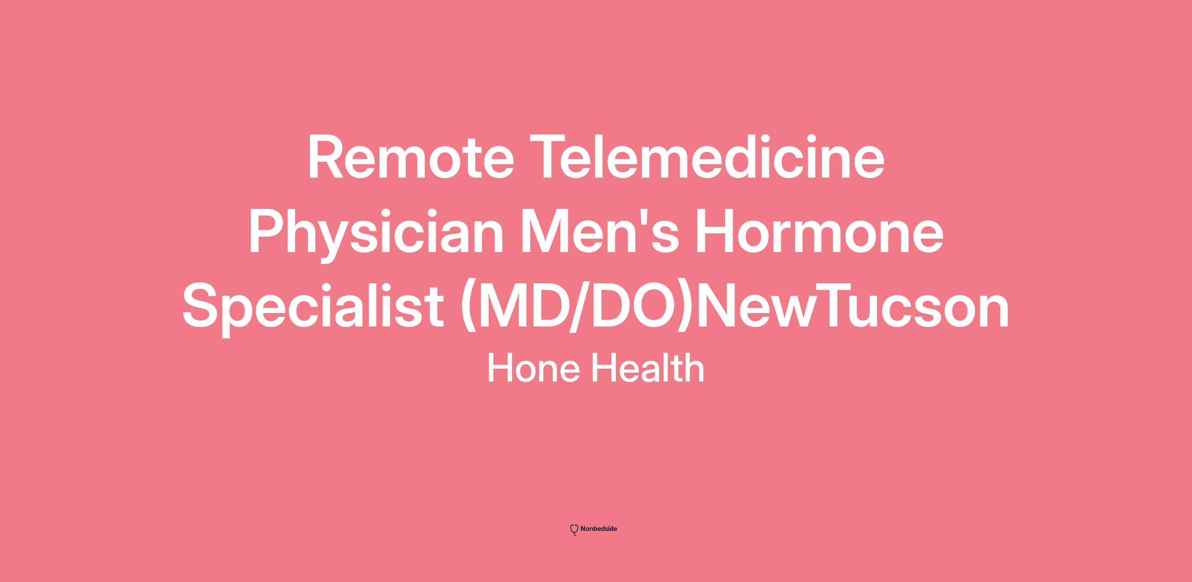 Remote Telemedicine Physician Men's Hormone Specialist (MD/DO)NewTucson