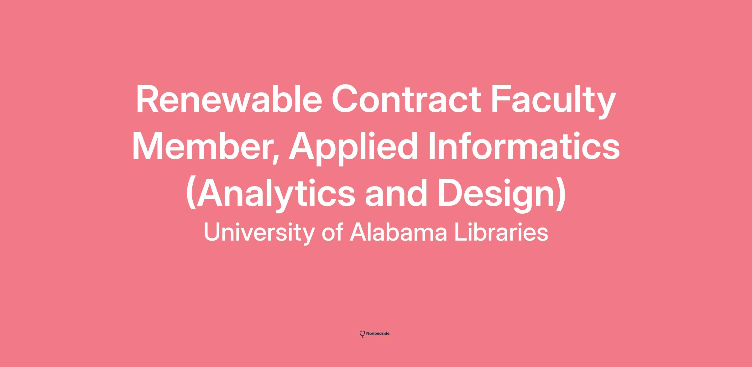 Links to Apply and for Additional Information on the Position Instructor, renewable contract: https://careers.ua.edu/jobs/instructor-renewable-contract-applied-informatics-school-of-library-information-sciences-tuscaloosa-alabama-united-states