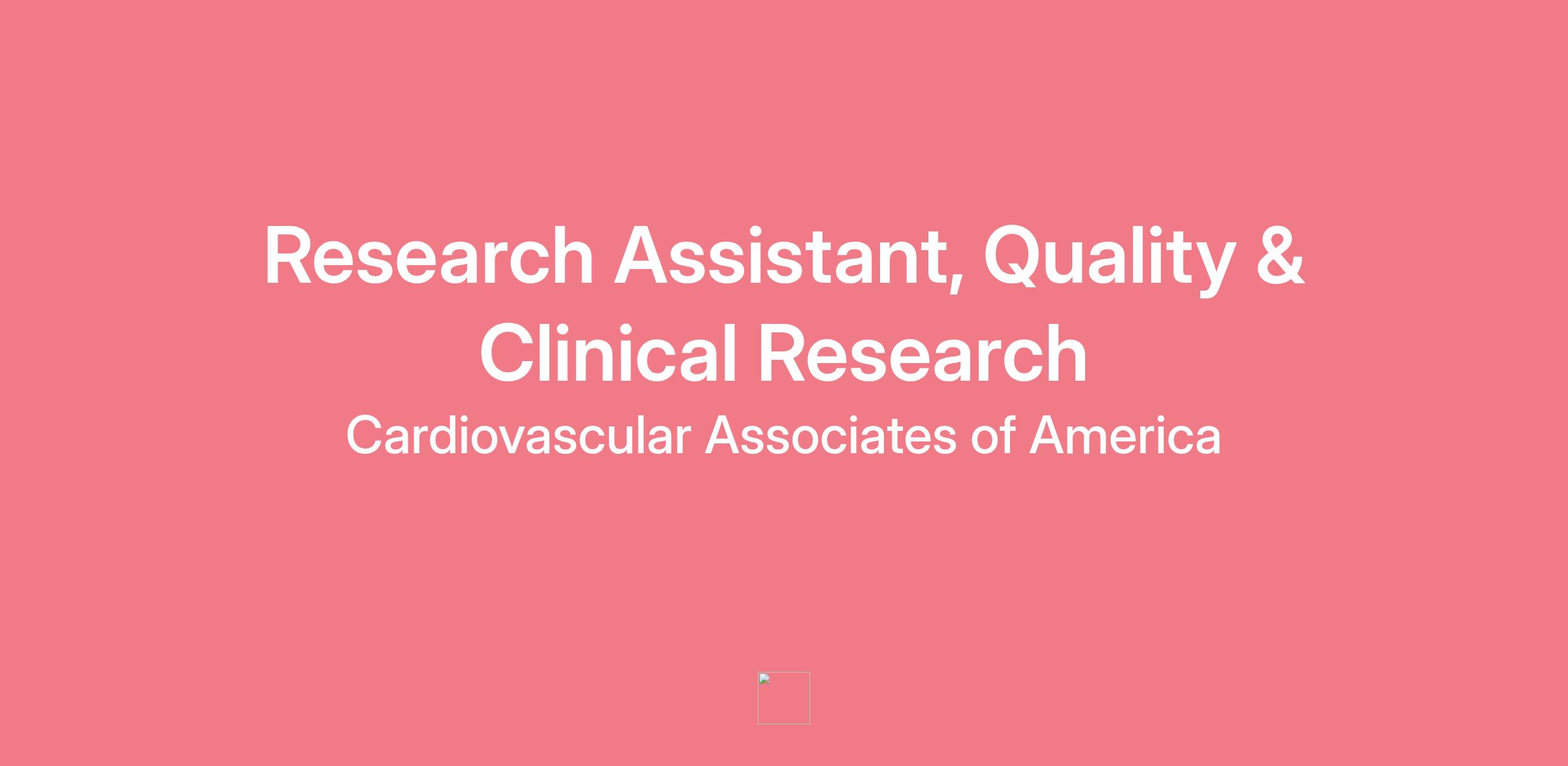The Research Assistant, Quality & Clinical Research will provide foundational support for Cardiovascular Associates of America’s enterprise quality improvement and clinical research programs. This role will be evenly split between quality initiatives and clinical research activities, including outcomes and health services research.