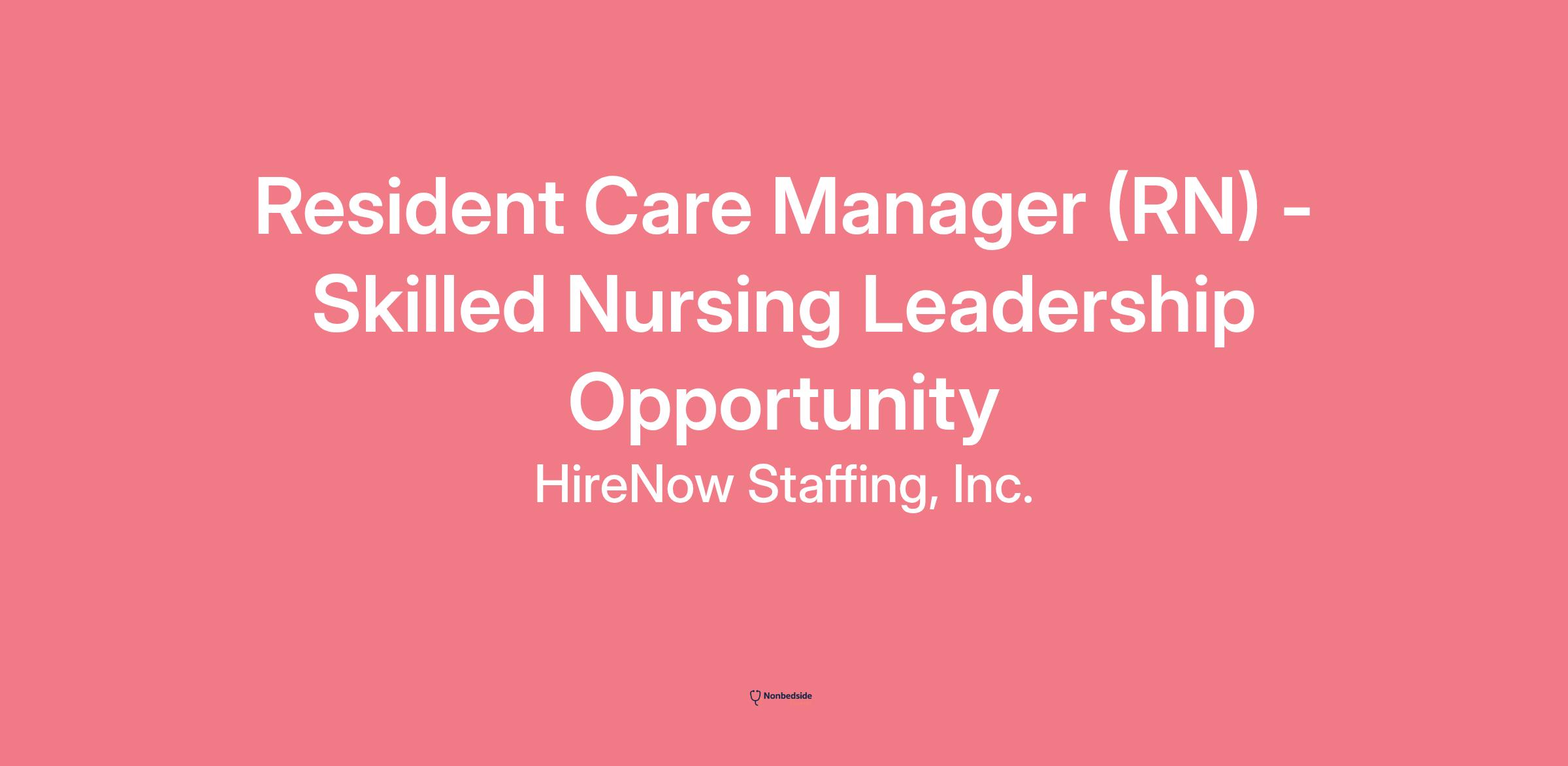 Resident Care Manager (RN) Skilled Nursing Leadership Opportunity