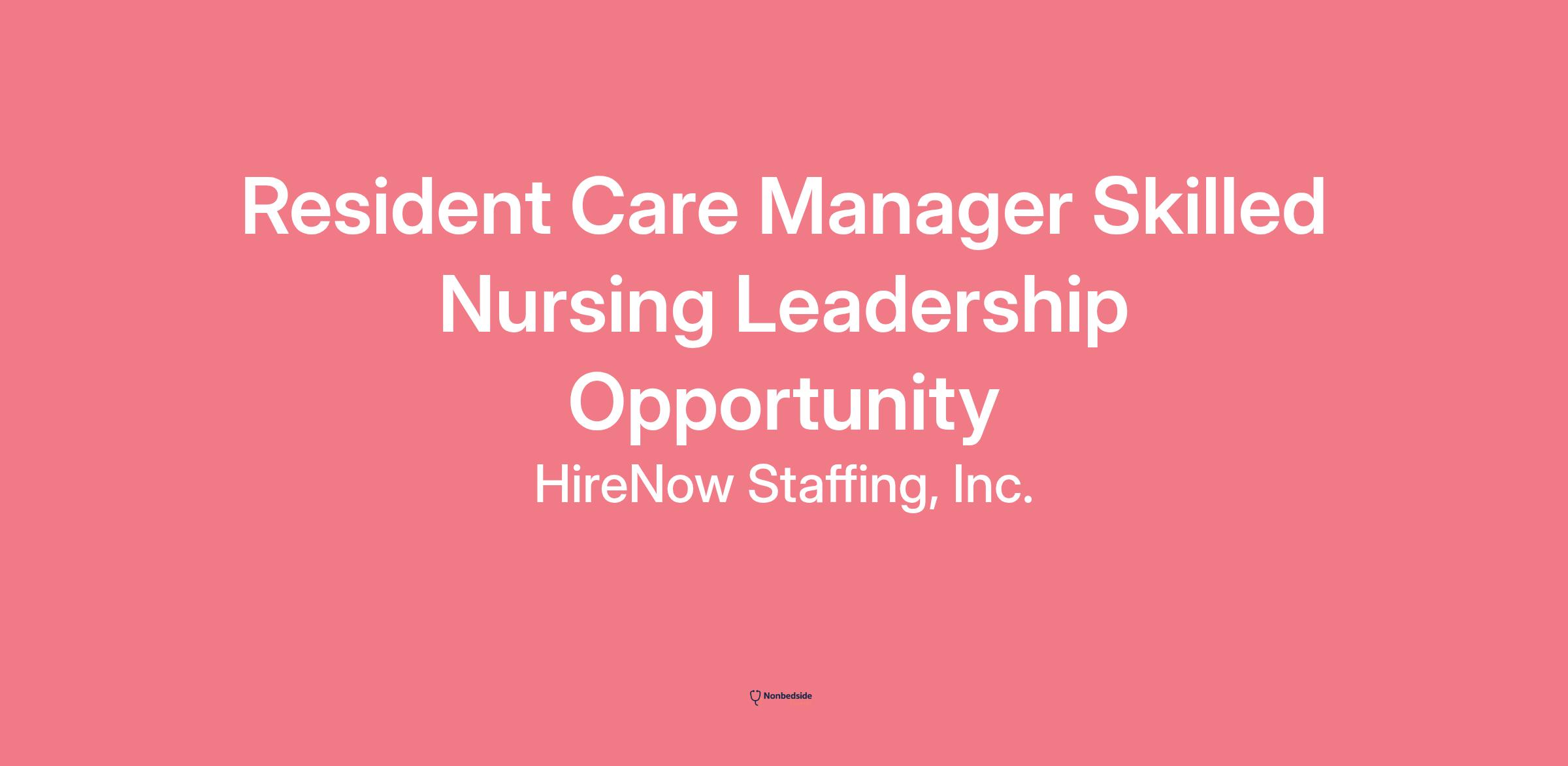 Resident Care Manager (RN) Skilled Nursing Leadership Opportunity