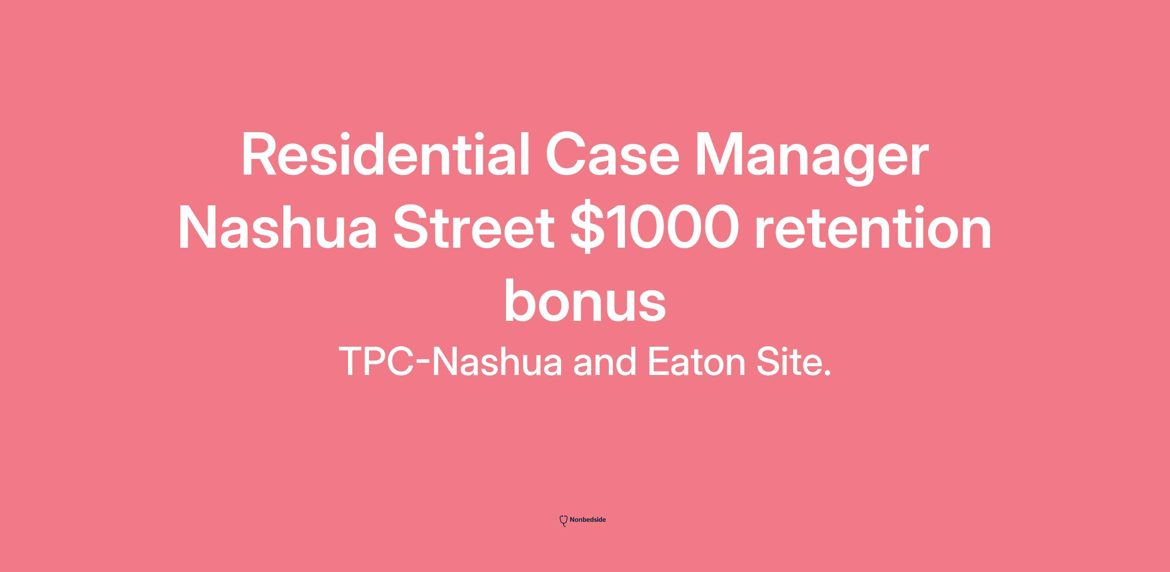Residential Case Manager Nashua Street $1000 retention bonus This position is eligible for a [prorated] $1,000 sign-on bonus.