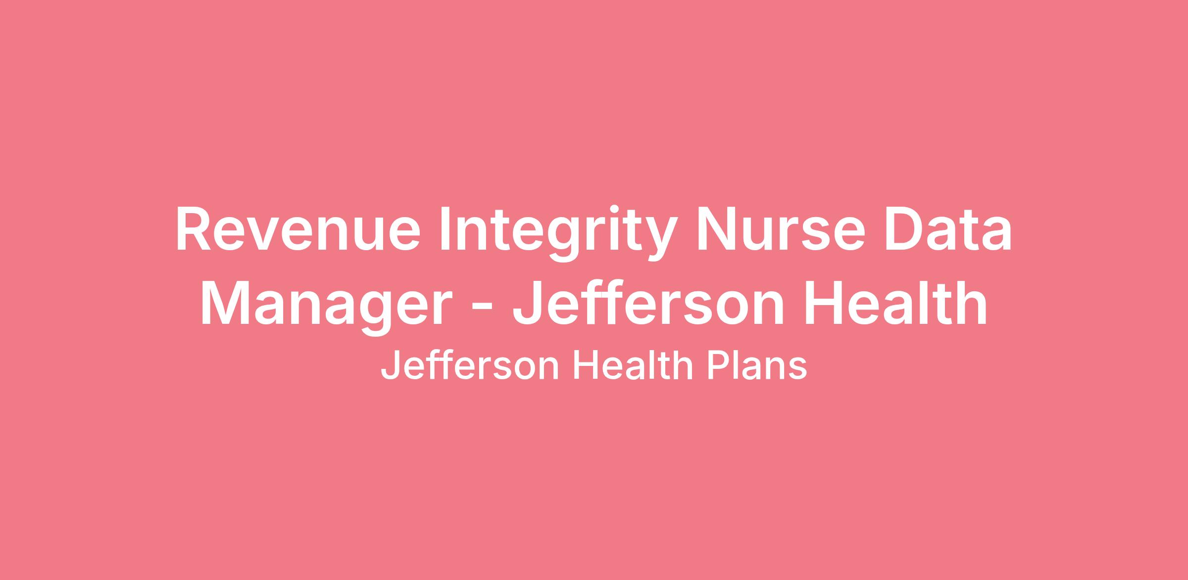 Revenue Integrity Nurse Data Manager - Jefferson HealthJob Description